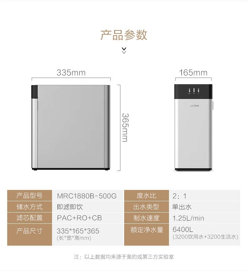 Midea water purifier household water purifier direct drinking reverse osmosis intelligent water purifier large flux MRC1880B-500G
