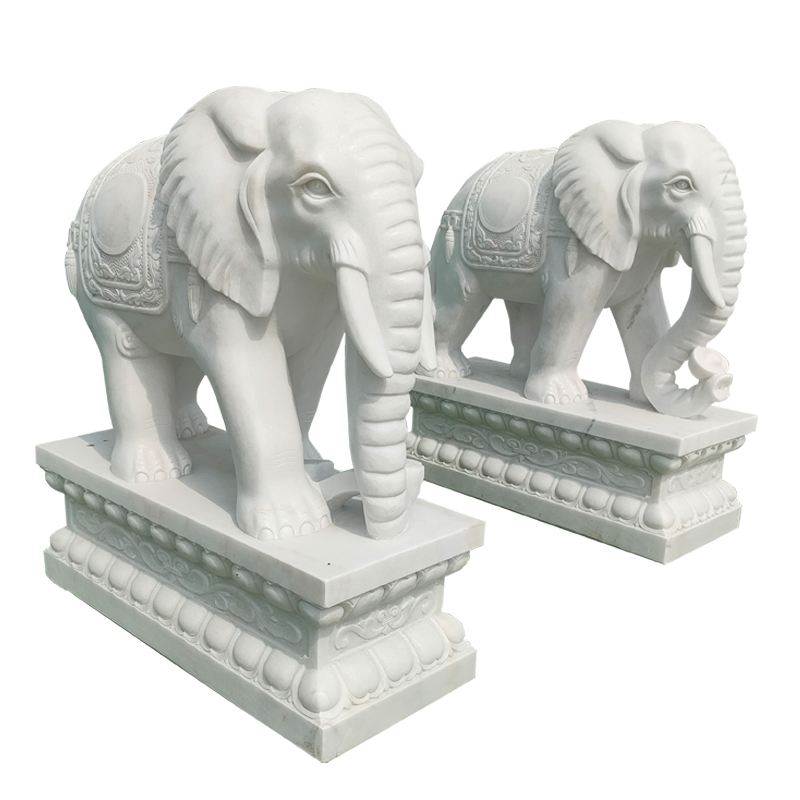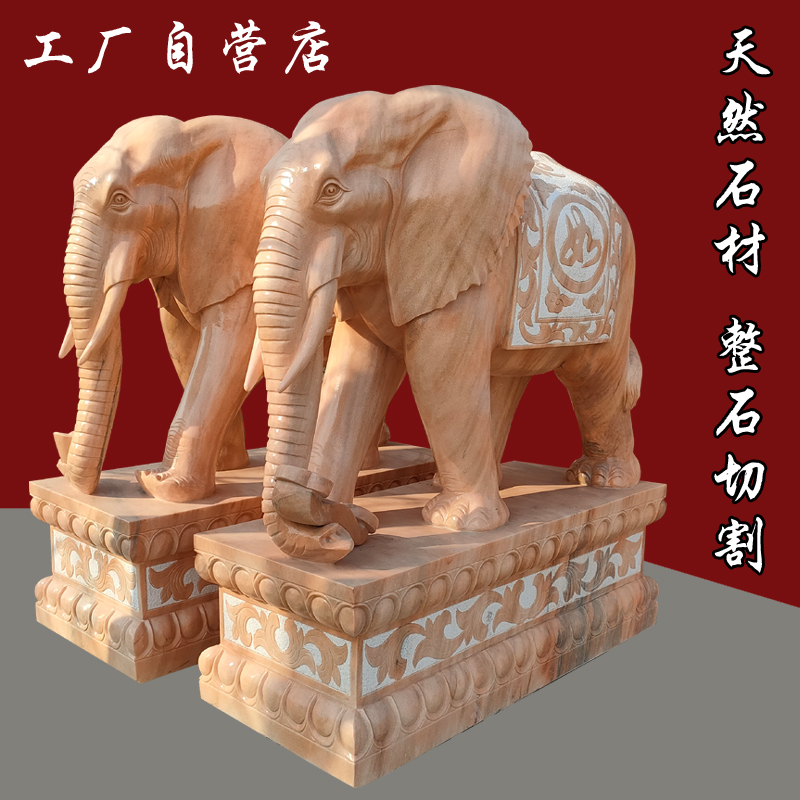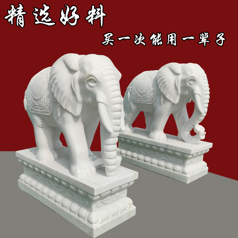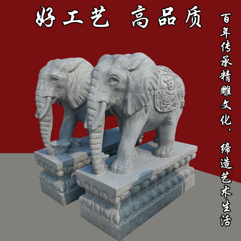 Stone carving elephant a pair of natural green stones Han Baiyu entrance to the property company Opening a villa for home looking at the door swing piece-Taobao