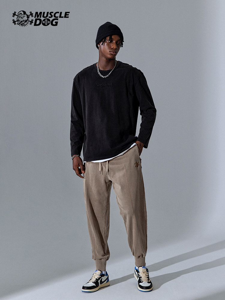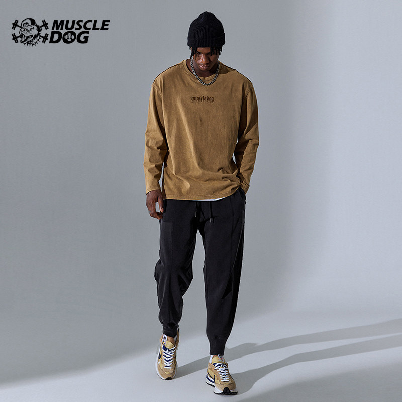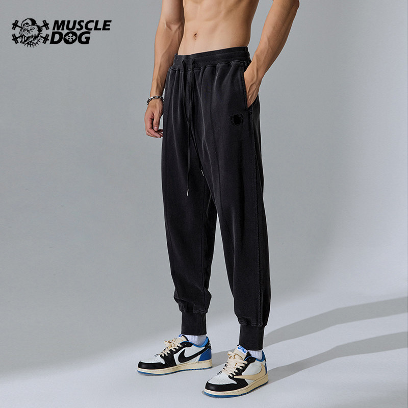 Muscle Dog Tide Brand Autumn New Washing Water Distressed Loose Leg Fitness Pants Sports Leisure Trousers Pants Men