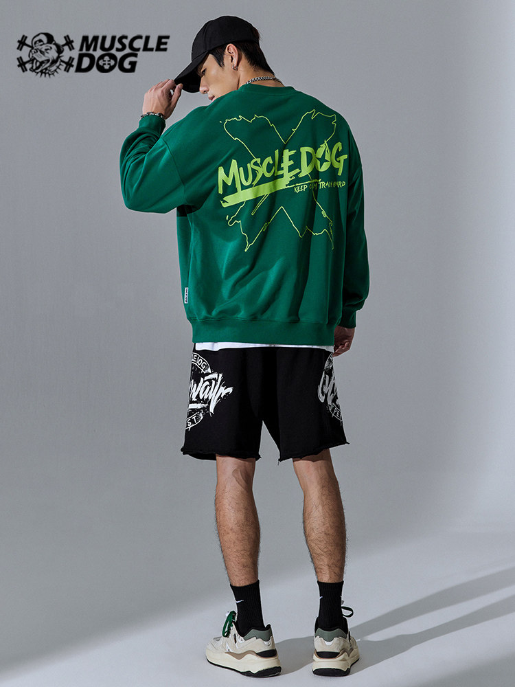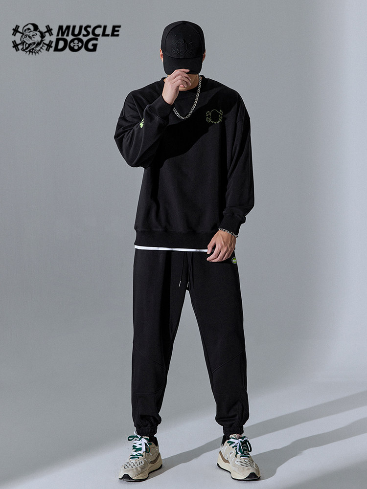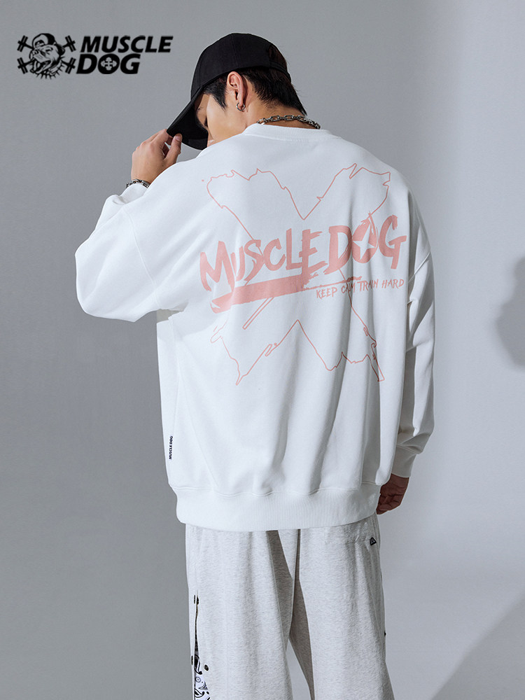 Muscle dog trendy brand autumn new sports and leisure round neck long-sleeved sweater men's loose fitness training pullover