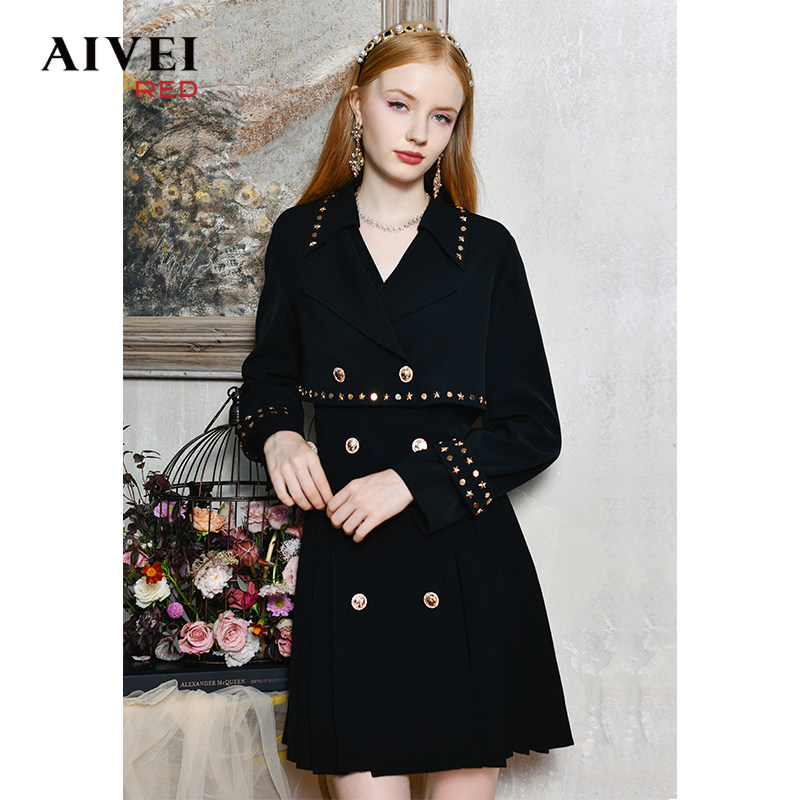 AIVEI Hingga Ai Wei 2023 Spring New Temperament Suit Short Coat Collection Waist 100 Pleats Dress P056S053-Taobao