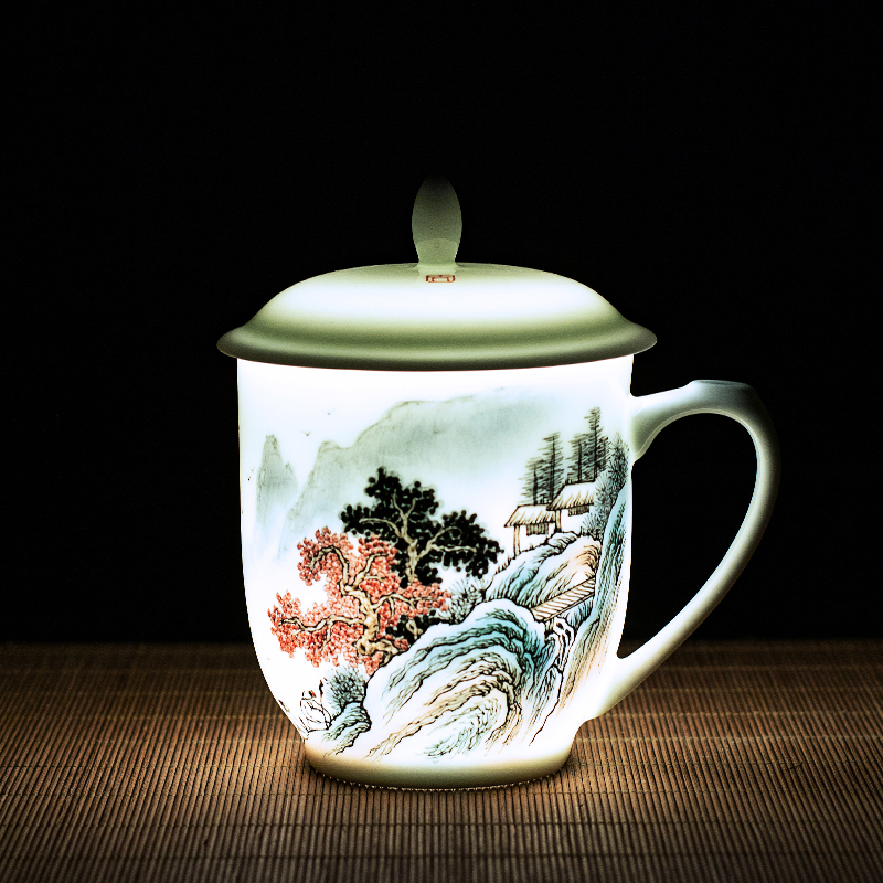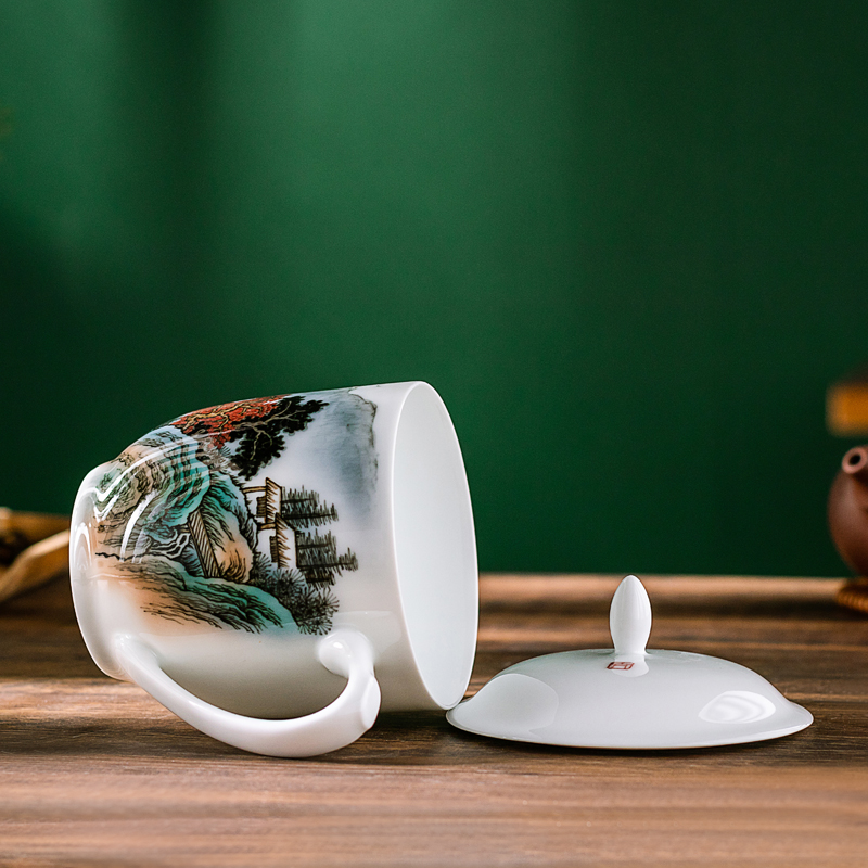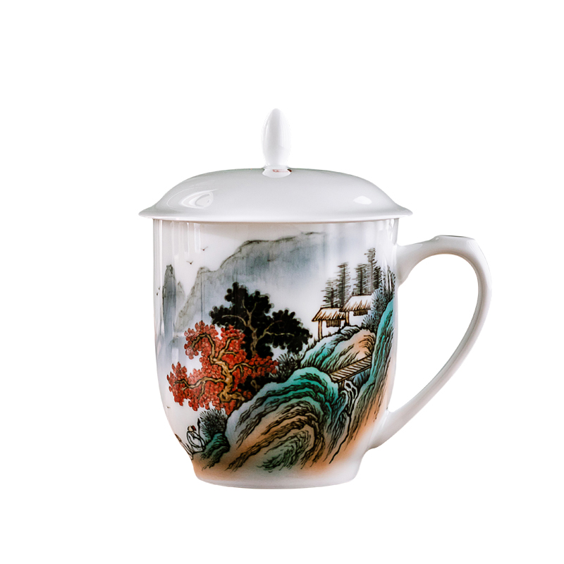 Reworked landscape tea cup National Master Liu Pei Bamboo with cover Master's cup Mao porcelain Cup Health Porcelain Cups High-end Gifts-Taobao