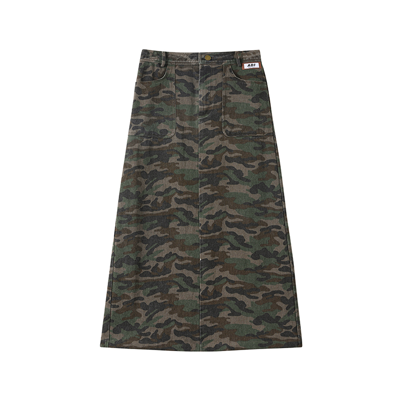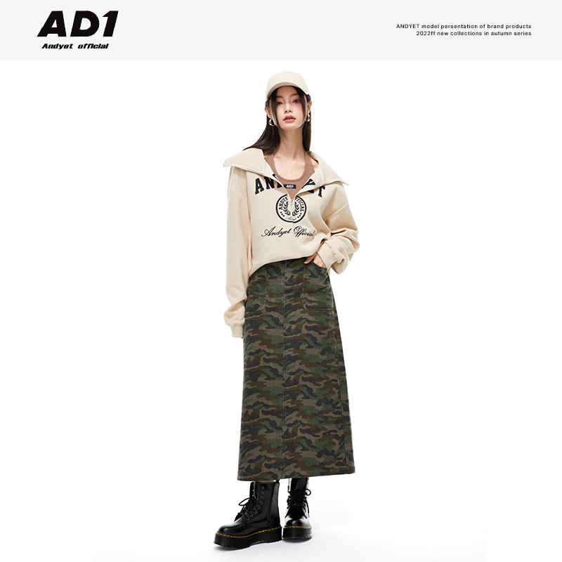 ANDYET AD1 22AW Original Retro Tooling Camouflage High Waist A-line Skirt Commuter Style Long Half Skirt Women