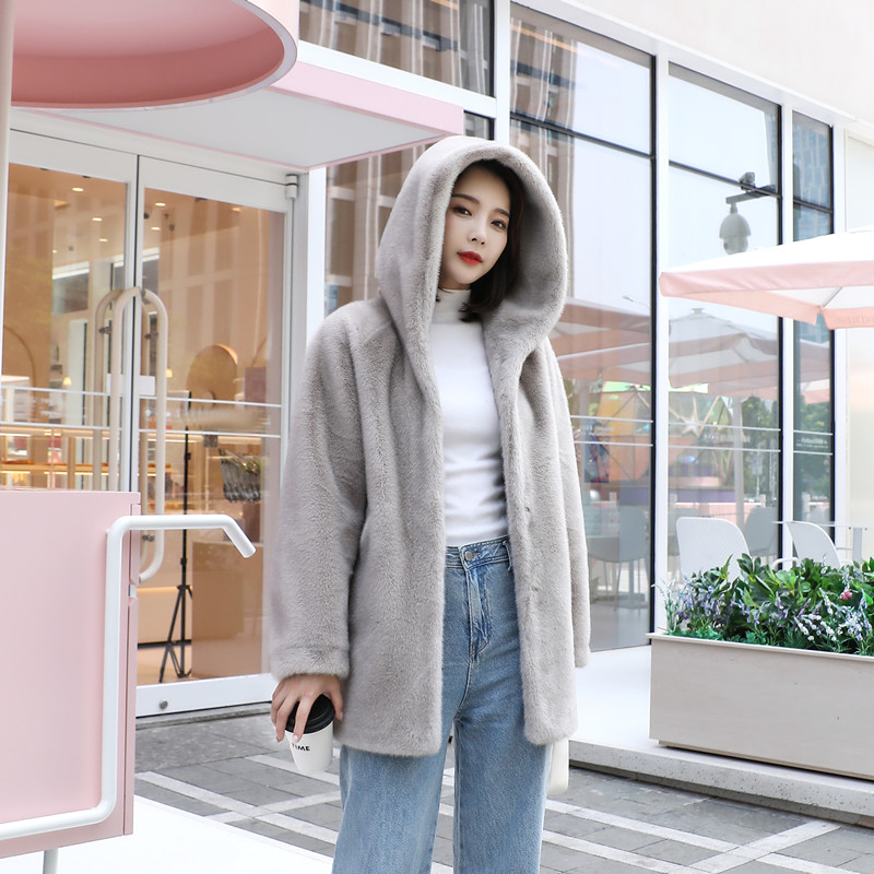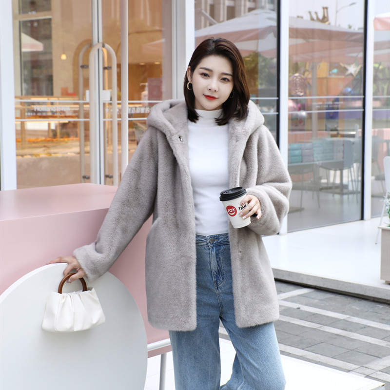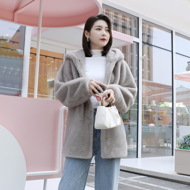New eco-friendly mink fur and fur integrated mid-length mink fur coat young mink fur coat female hooded winter