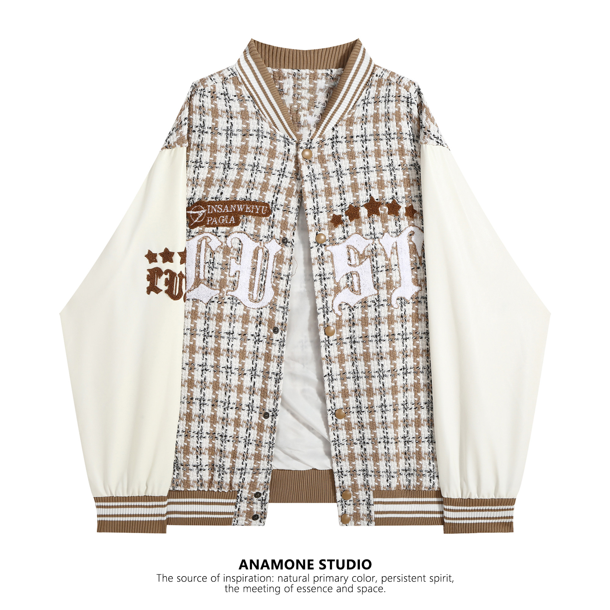 ANAMONE American Coarse Flowers, Spliced Baseball Suit Women's Spring And Autumn Retro Letters Embroidery Design Sense Loose Jacket-Taobao