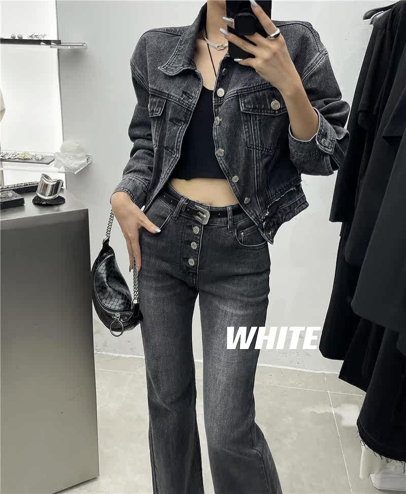 white Casual Crossing Short Cowboy Jean Woman 2023 New Design Irregular Cowboy Jacket