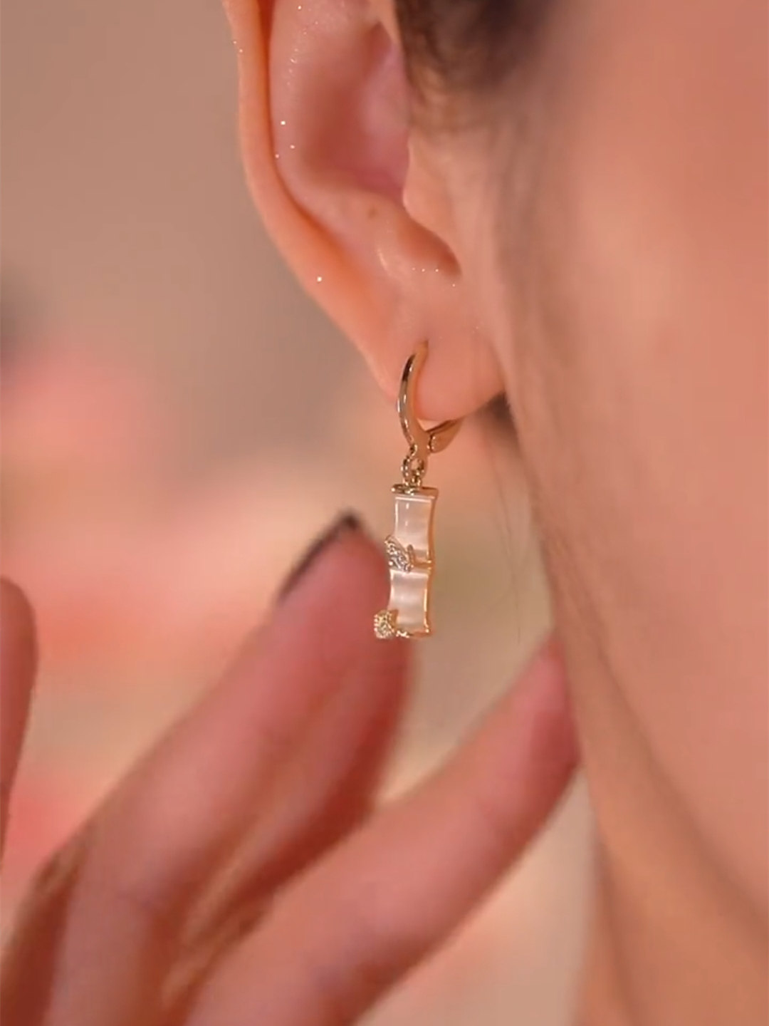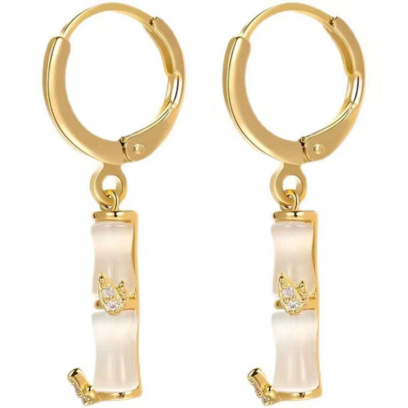 18K gold bamboo earrings female earrings