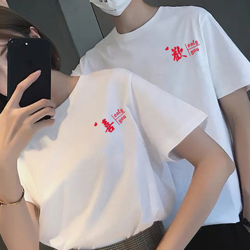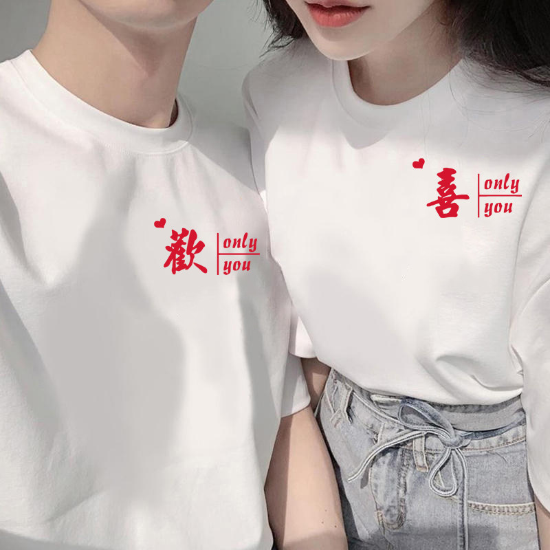 Wedding Registration Photos Lovers Fashion Summer Clothing Season Advanced 2023 New Trends Small Crowd Design Feel Short Sleeve T-shirt Mesh Red-Taobao