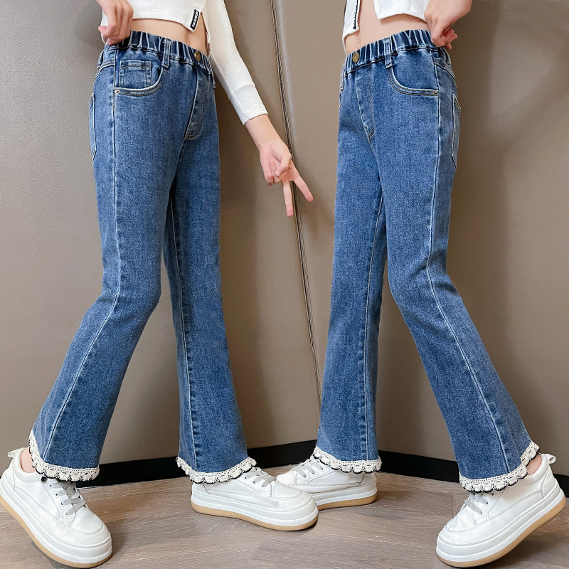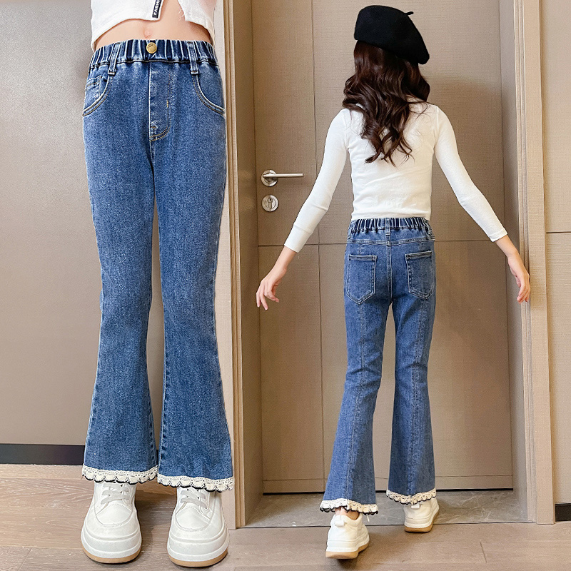 Girl Jeans Autumn Winter Clothing Foreign Gas Plus Suede Thickened Children's Big Boy Pants Girl Lace Winter Horn Pants-Taobao
