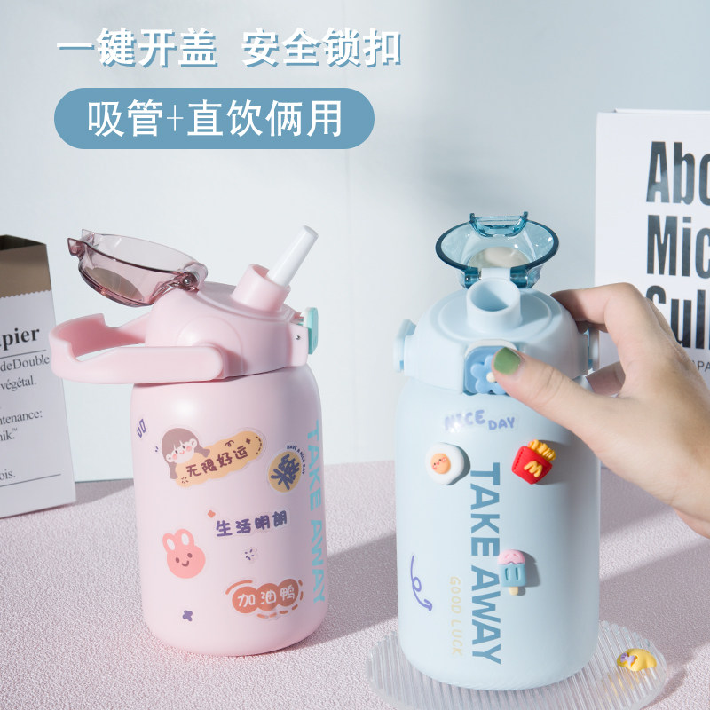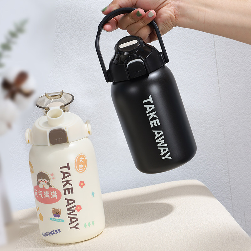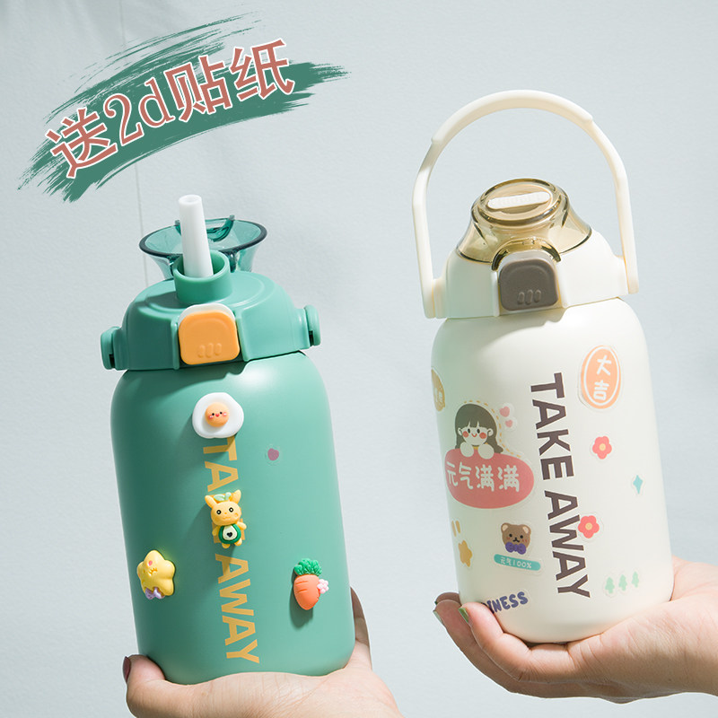 High - value large belly cup girl 2022 new network red explosion is simple and cute large capacity high - capacity high - straw insulation cup