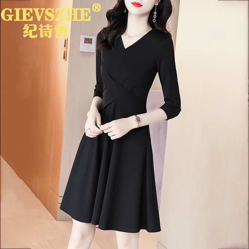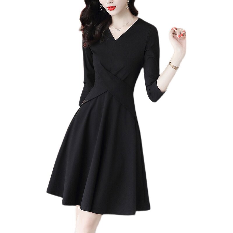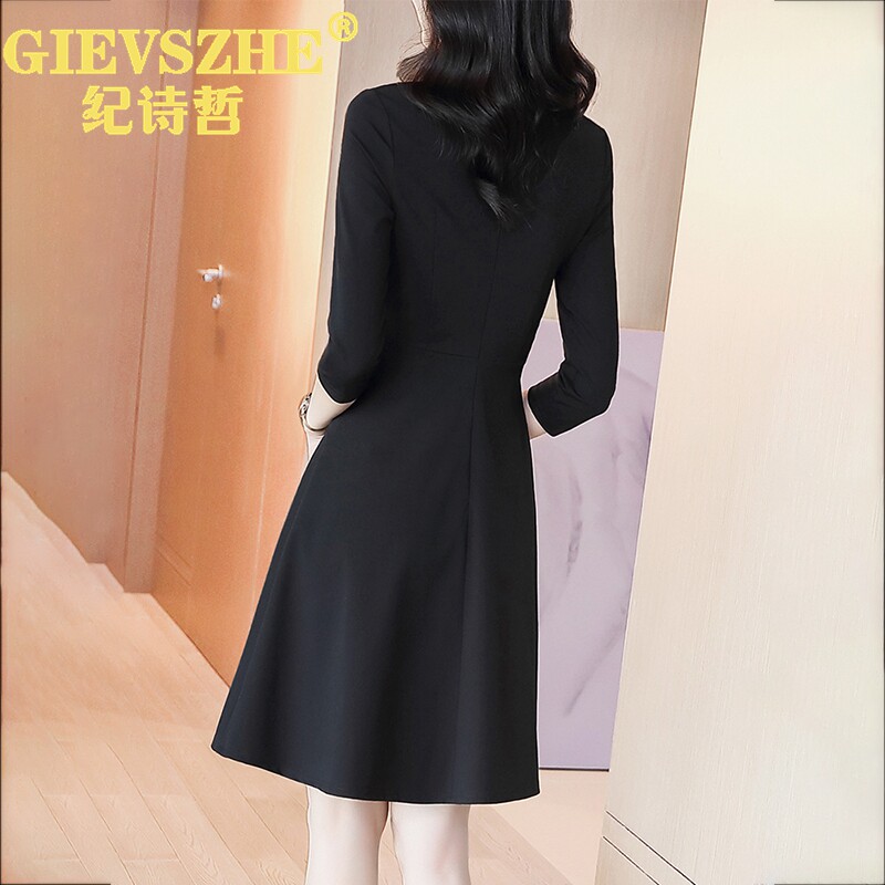 Chroniche's fall Lions dress dress 2023 New closets Giant Slimmer black Herbene Wind Long sleeves Little Black Dress-Taobao