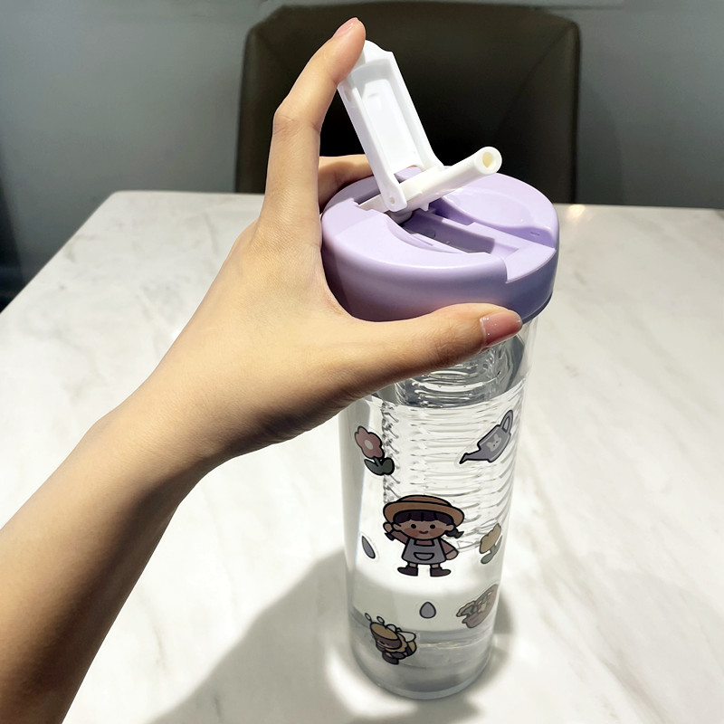 Net red fruit tea insulated plastic anti-wrestling straw cup children in large capacity dry and humid separation bubble teacup men