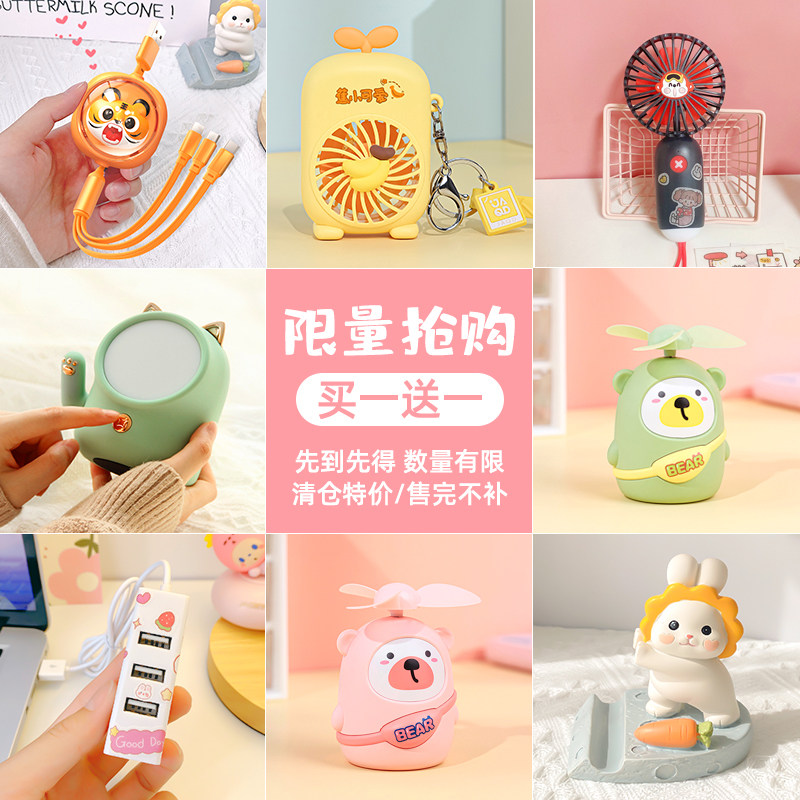 Buy 1 Get 1 Cute Rabbit Workshop Fan Feedback Cute Fan Humidifier Data Cable Phone Holder 2022 Special Goods Clearance Pickup Quantity is limited while stocks last