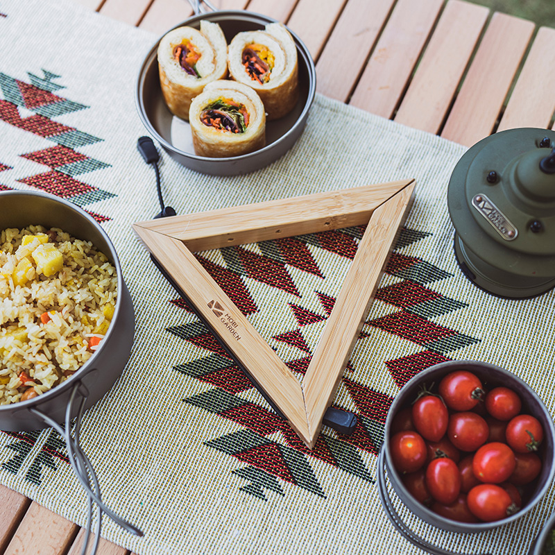 Mugao flute outdoor triangle pot pad insulation solid wood pad camping home table anti-scalding heat-resistant bowl mat bamboo mat