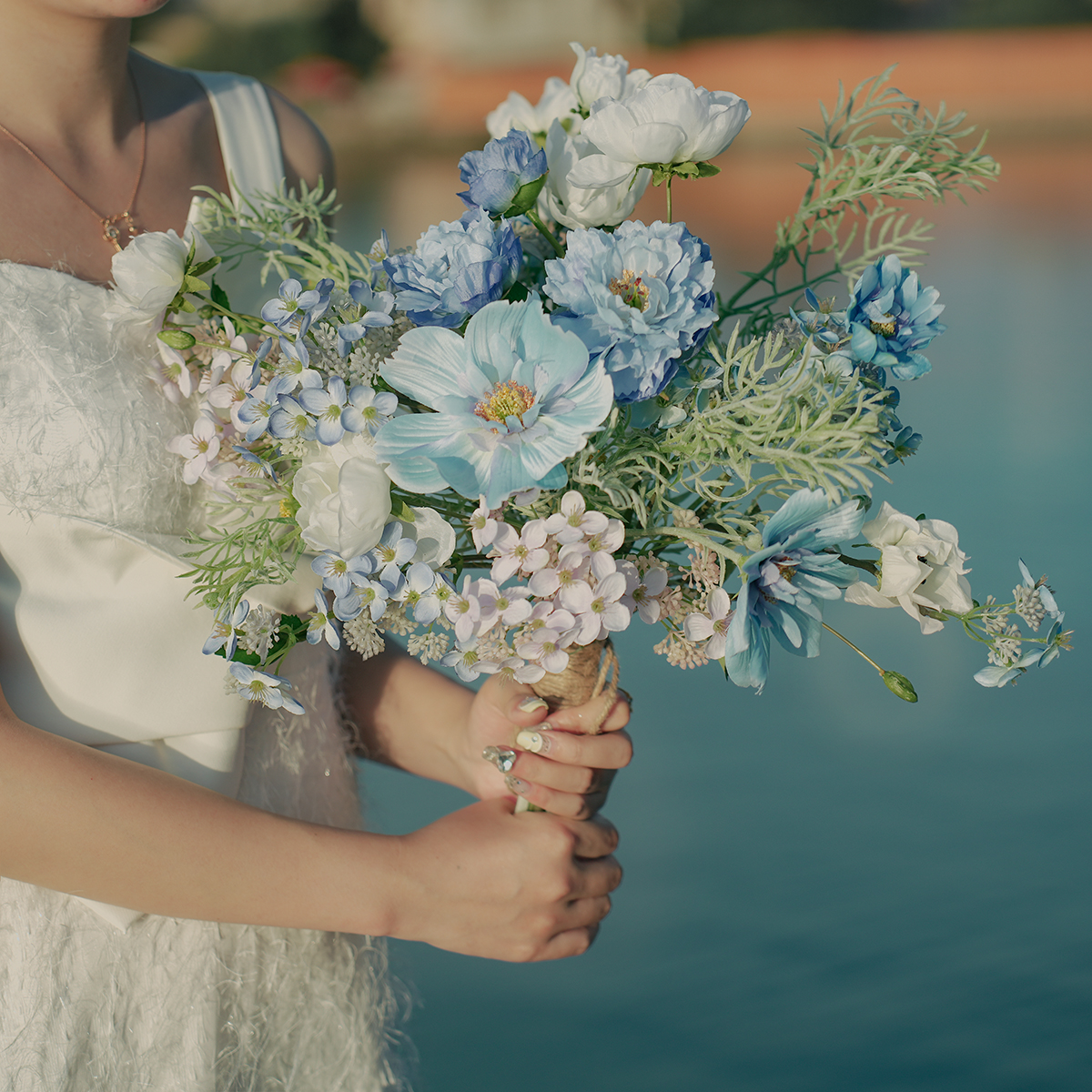 ins meritocratic hand holding bluepurple wedding silk flower emulation fake flower soft dress floral flower arrangement wedding home room