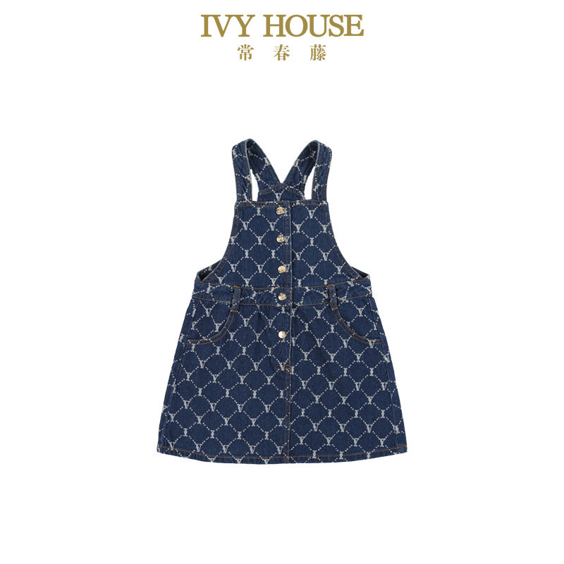 IVY HOUSE Ivy children clothes girl dress with dress and autumn style classic old flower denim harness skirt pro-Taobao