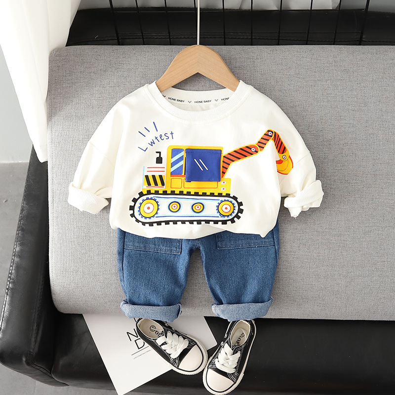 2022 - The new boy's handsome round - collar long sleeve suit boy's casual jean trousers