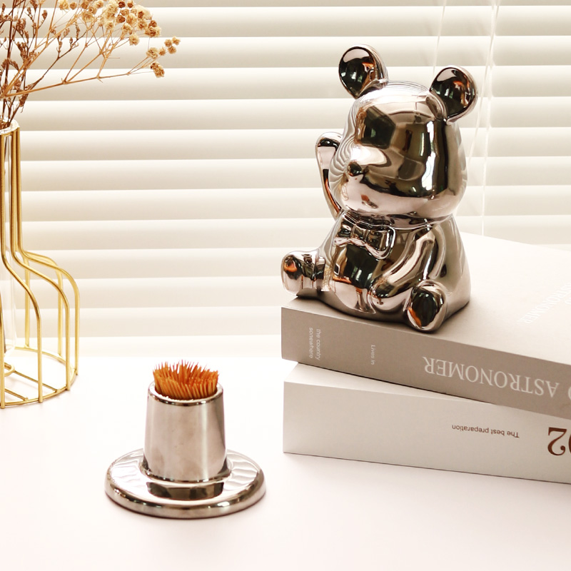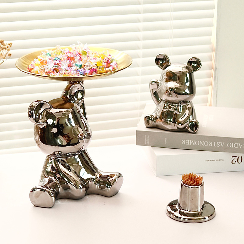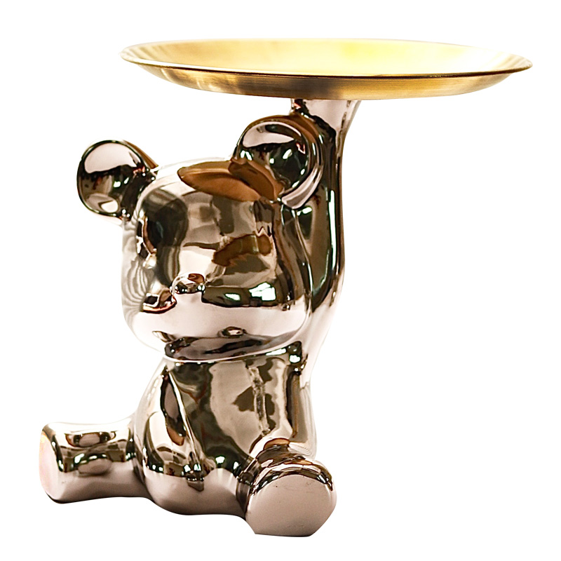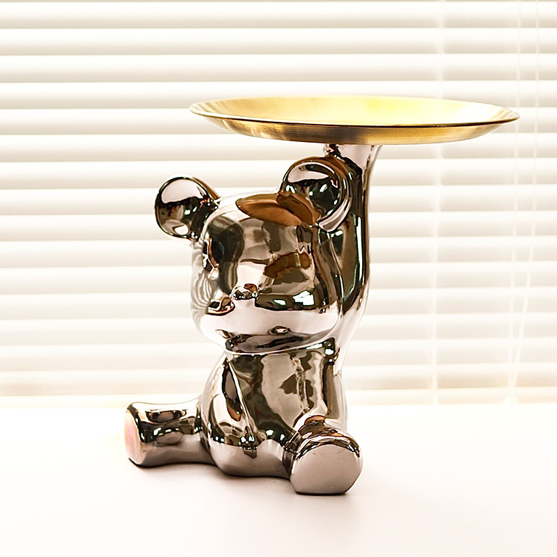 Silver lifting pan small bear fruit pan silver lifting pan with small bear fruit pan (large head bear) small bear storage money pot 13 5x12x16 5cm silver color super cute little bear big fruit pan silver super cute