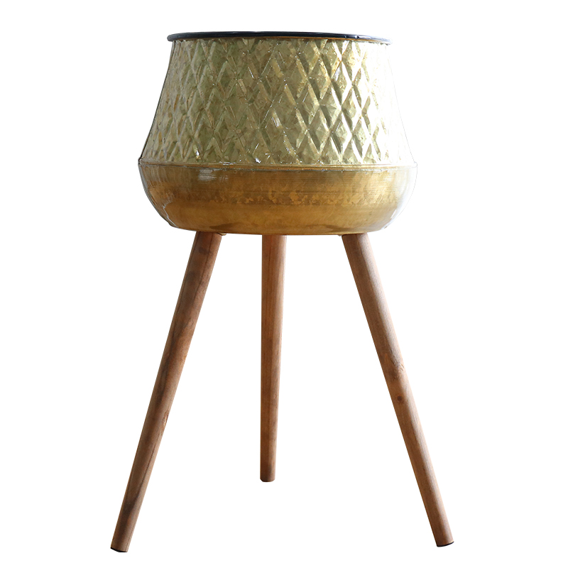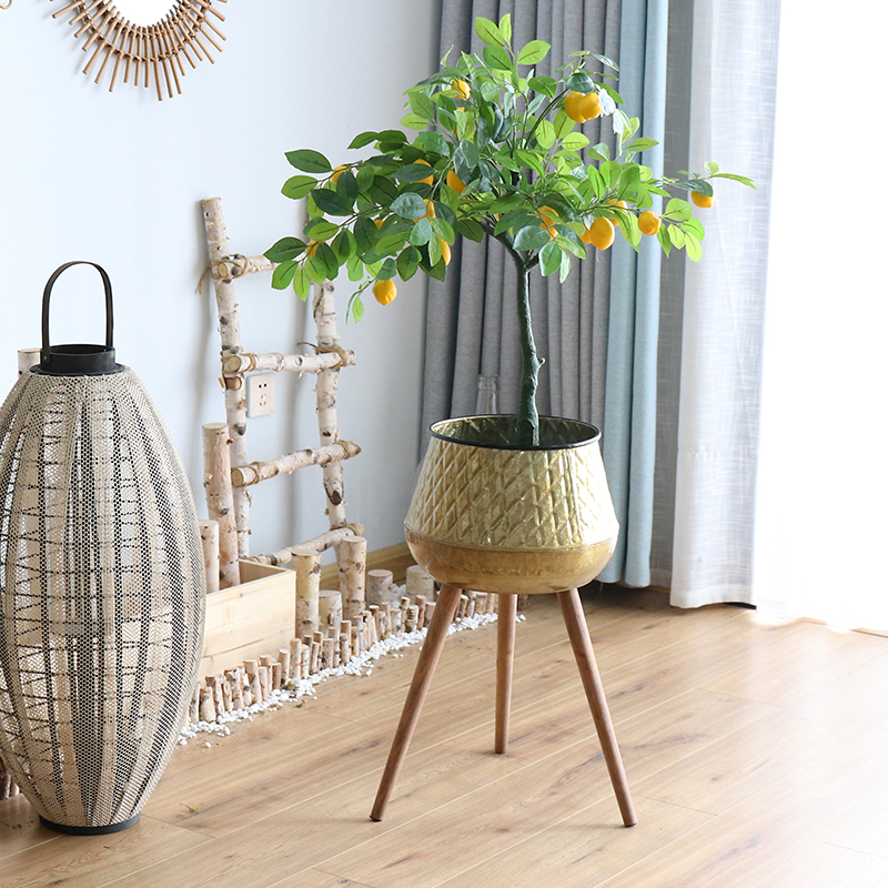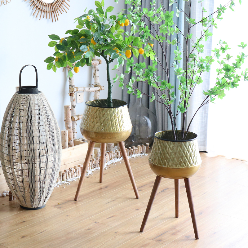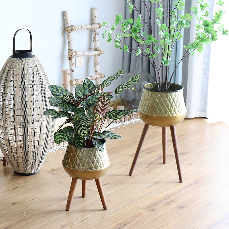 European vintage gold iron pot bracket floor bucket pot green plant decoration decoration decoration household living room balcony