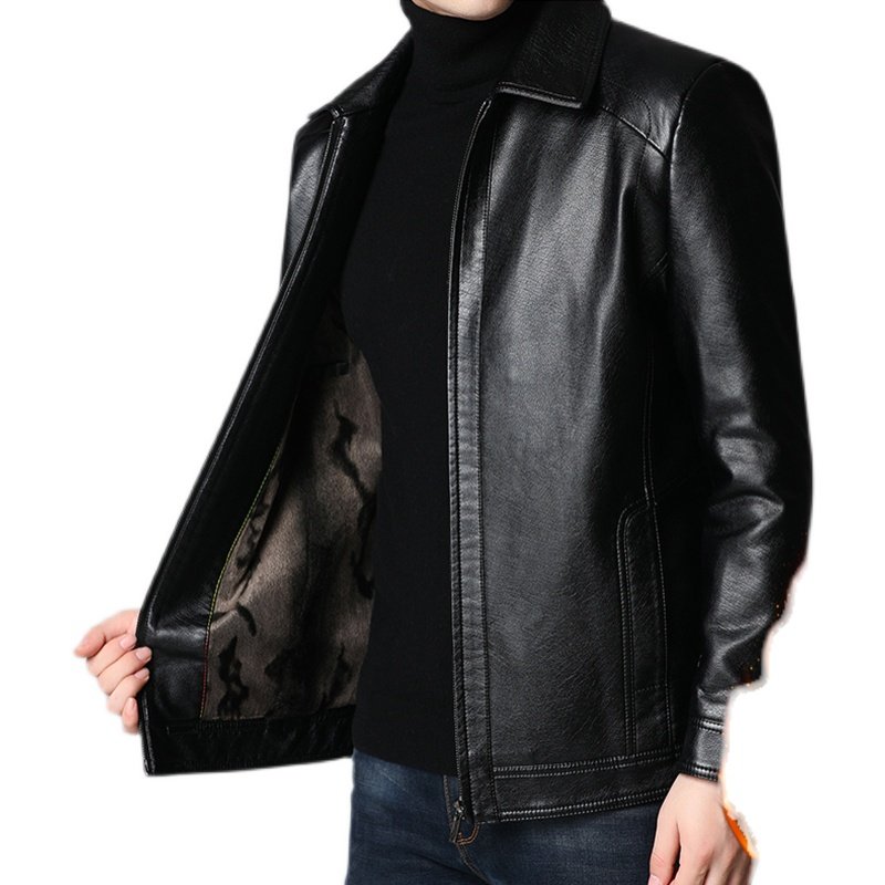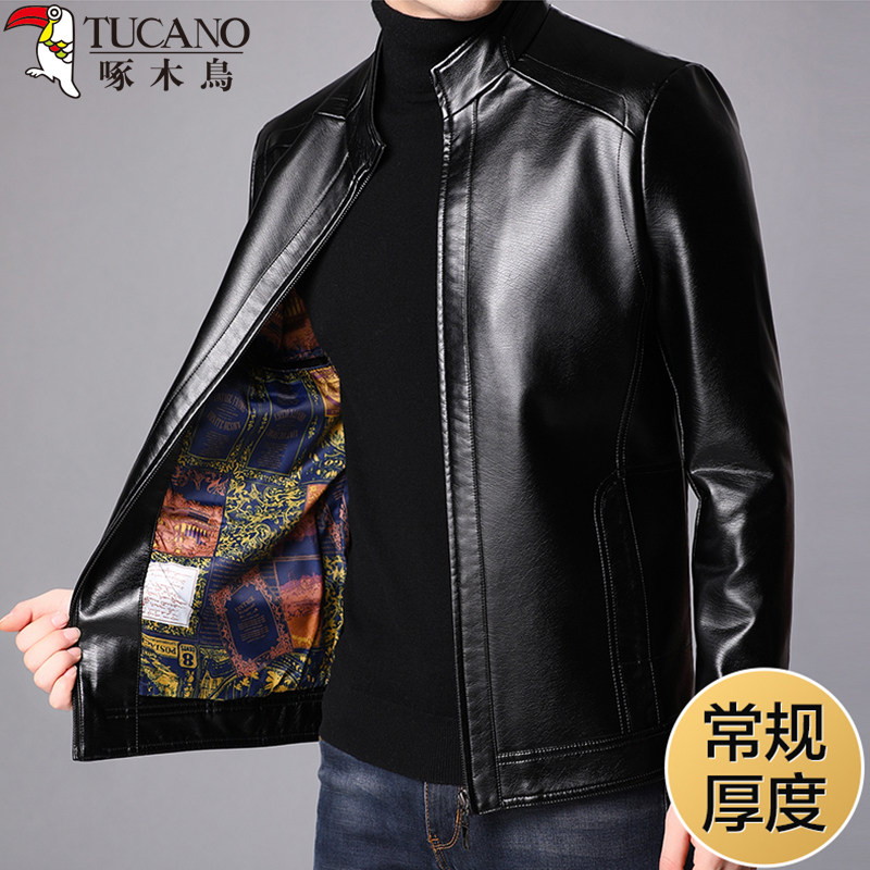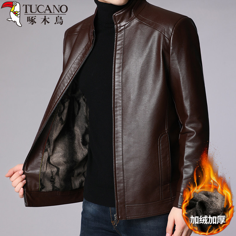 Woodpecker Genuine Leather Soft Leather Clothing Men's Autumn Winter Plus Suede Thickened Leather Jacket Men's Aged Dad Clothing Sheepskin Coat-Taobao