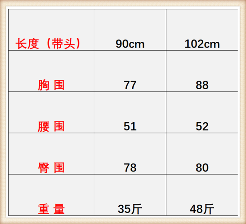 Half-body leader-length 90cm-weight 35 kg half-body leader-length 102cm-weight 48kg half-body leader-length 90cm-smart pronunciation-body-length 102