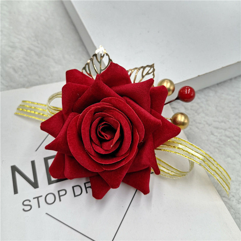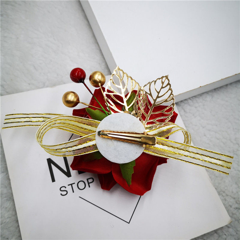 Bride Red Hair Clip Heads Flowers Rose Gold Leaf Flowers Qipao Gown Accessories Wedding head Accessories Mother-in-law Flowers-Taobao