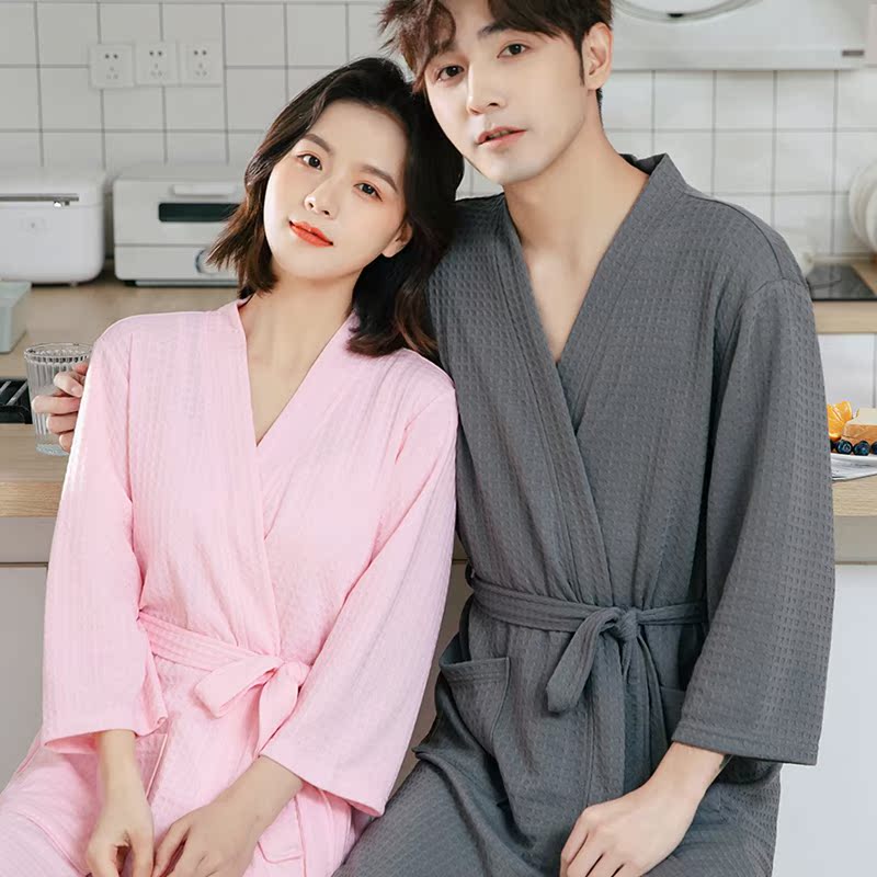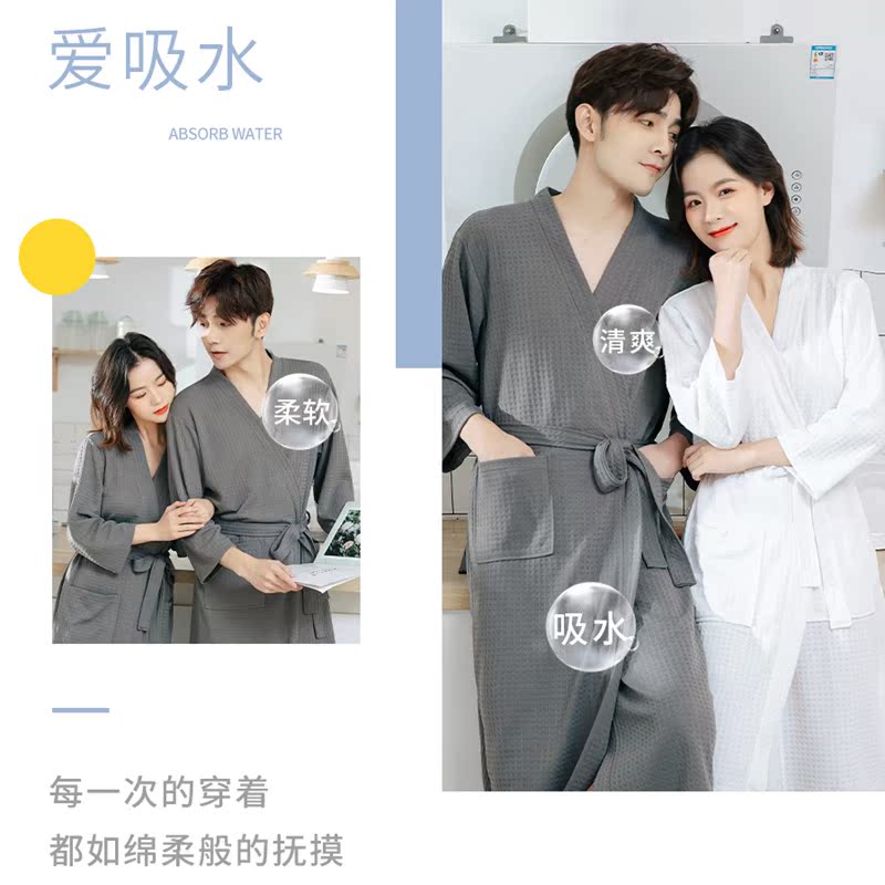 Bath robe female spring and autumn waffger thin dressing robe couple a pair of men high-end water skin dry hotel bathsuit