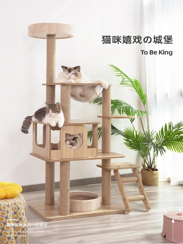 Cat climbing frame cat scratching board cat nest cat tree one large cat solid wood toy cat climbing frame big pillar space capsule
