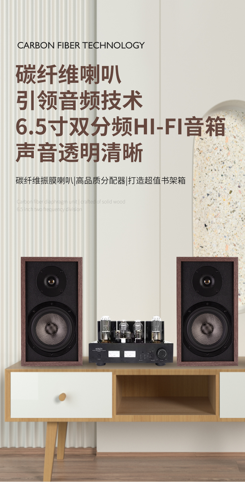 BRZHIFI D6 charcoal fiber hifi passive speaker 6 5 inch wooden bookshelf speaker sound-burning class table-Taobao