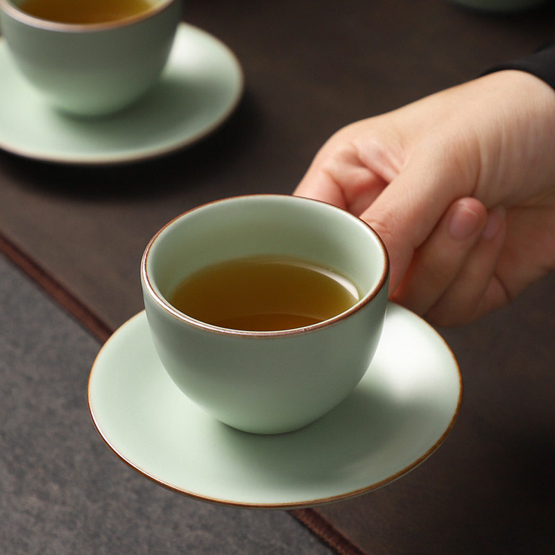 Ru Kiln Burn-Proof Cup Mat Retro Chinese Style Open Sheet can raise Ru porcelain Ceramic Tea Set Spare Parts Insulation Round Tea-Taobao