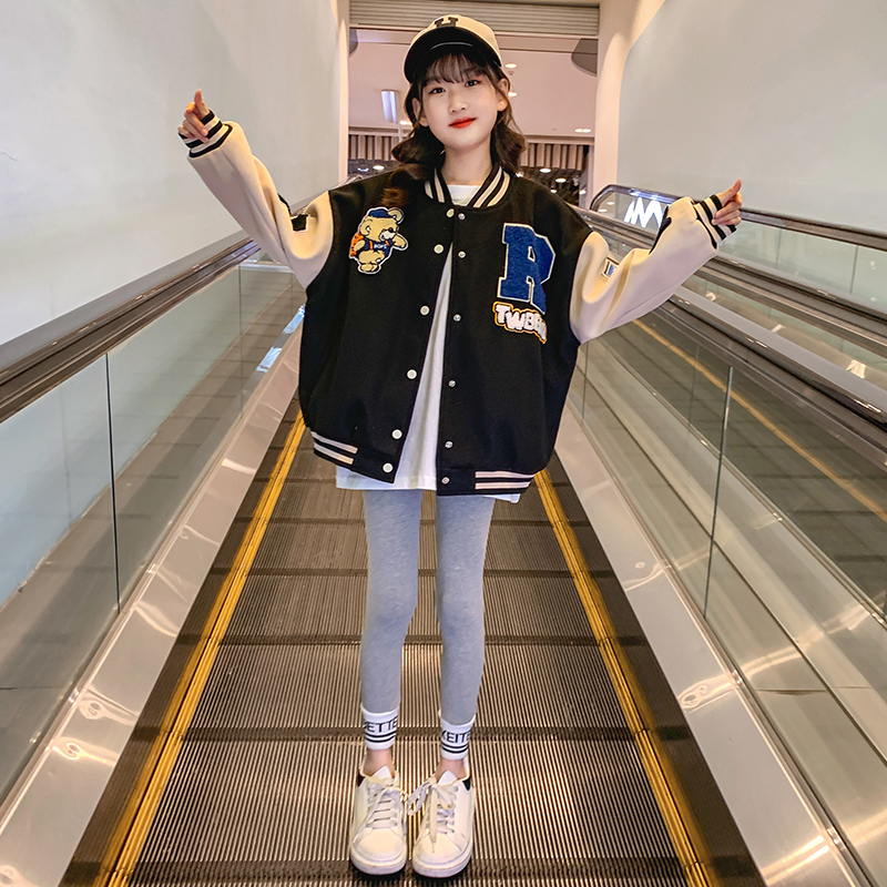 Girls baseball coat 2023 new spring clothing network red children in the big children wear Korean air fashion tops