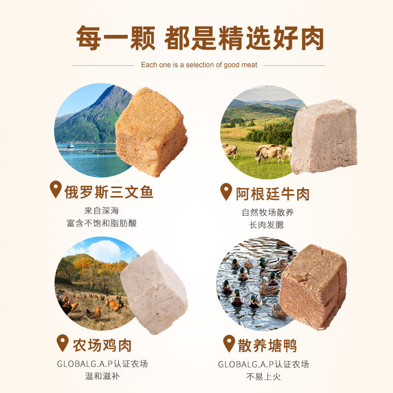 Freeze-dried raw duck meat for cats 50g Freeze-dried raw meat for cats Chicken 54g Freeze-dried raw meat for cats Beef 46g Freeze-dried raw meat for cats Salmon 50g