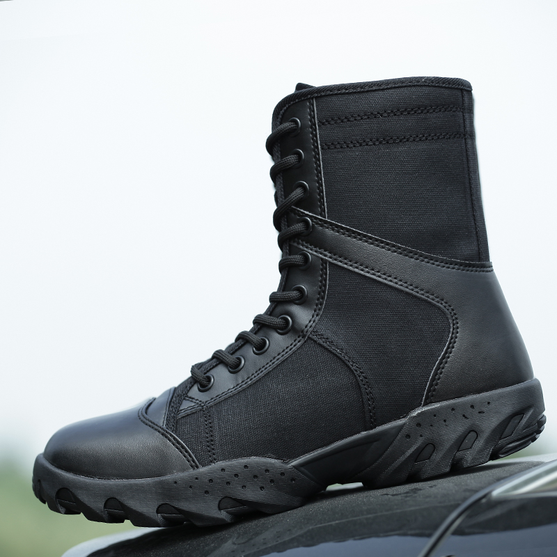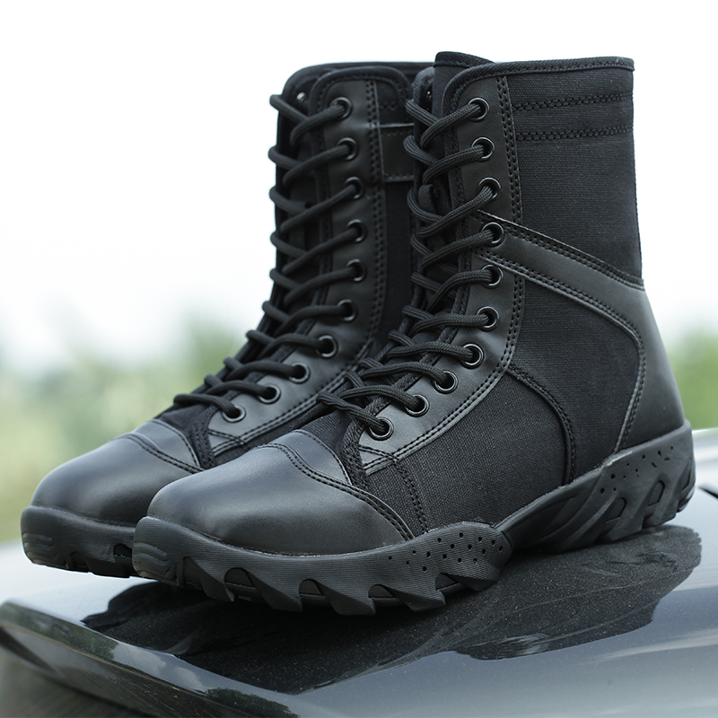 Summer high Help side zipped combat boots Men's net holes Light and breathable war boots Wearable training shoes Tactical boots Men's spring autumn-Taobao