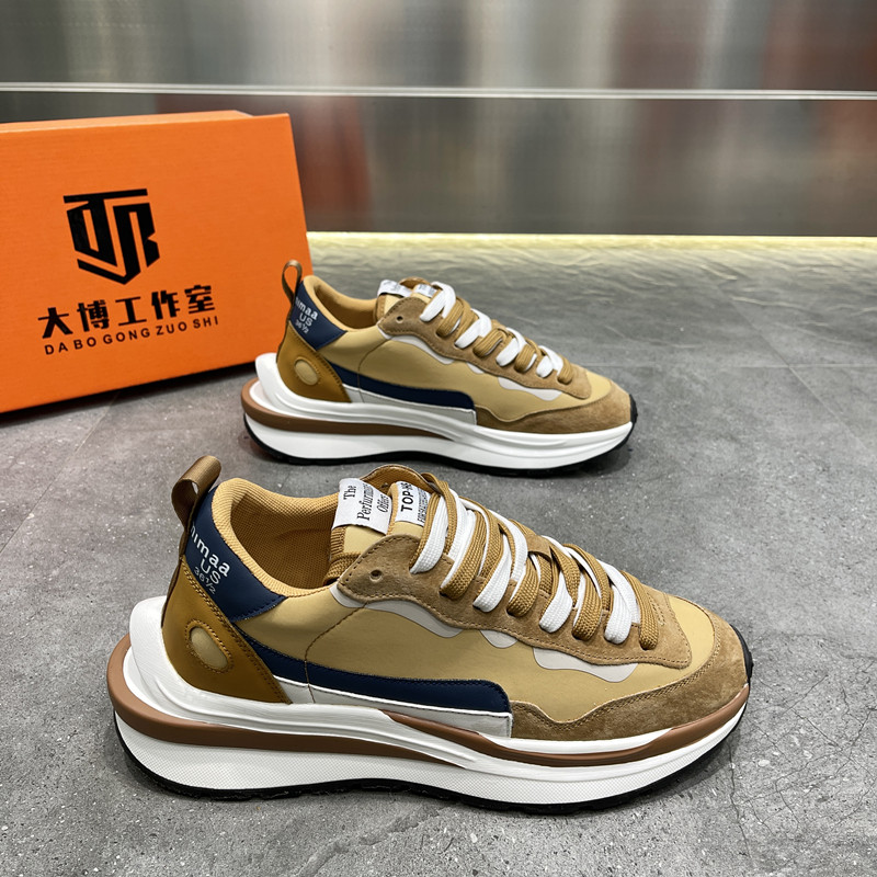 Men's shoes 2022 new leather daddy shoes trend thick waffle shoes on the cloth breathable low - helper sneakers sports shoes