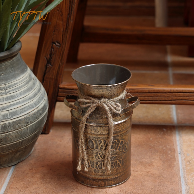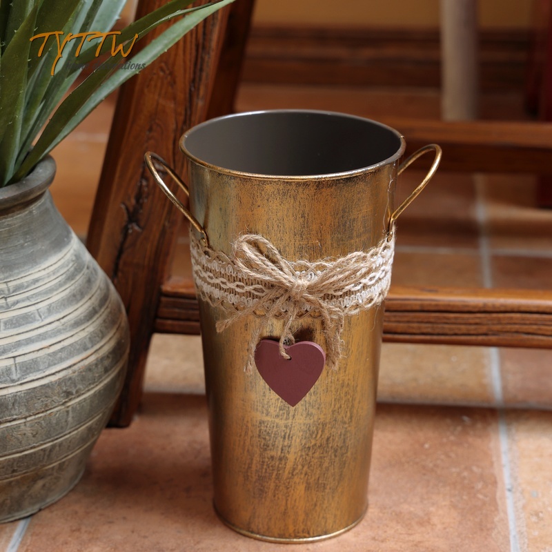 Retro made of old metal color dry flower Bucket American sheet Decorative Electric Silver-coated Vase Iron Art Flower Pot flower cylinder pendulum piece-Taobao