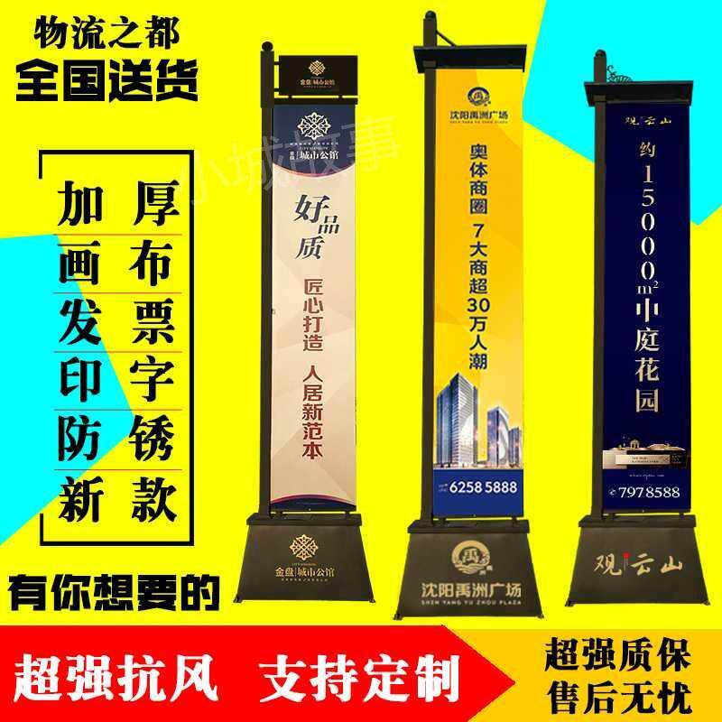 5m thick iron road flag package freight invoice does not include pre-embedded road flag (3 5m flagpole advertising frame) upper and lower double brand road flag 5m flagpole plus base Chess thickened iron road flag 5m flagpole plus base