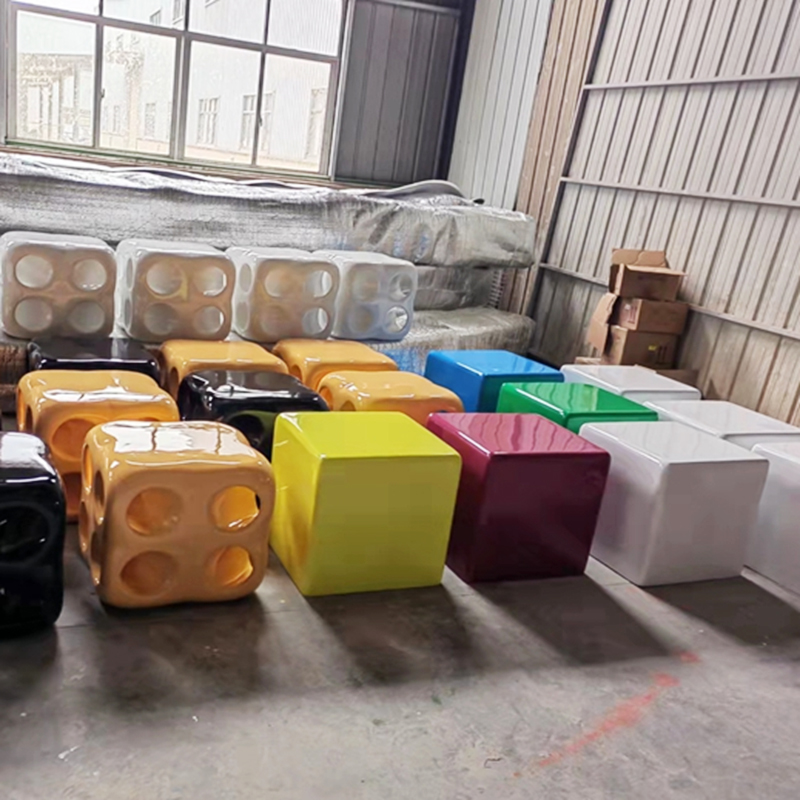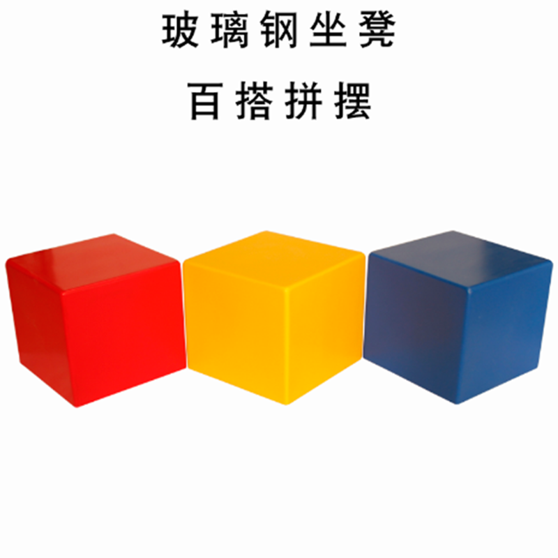 Glass and steel leisure seat kindergarten modern square color children's stool outdoor public waiting mall chair