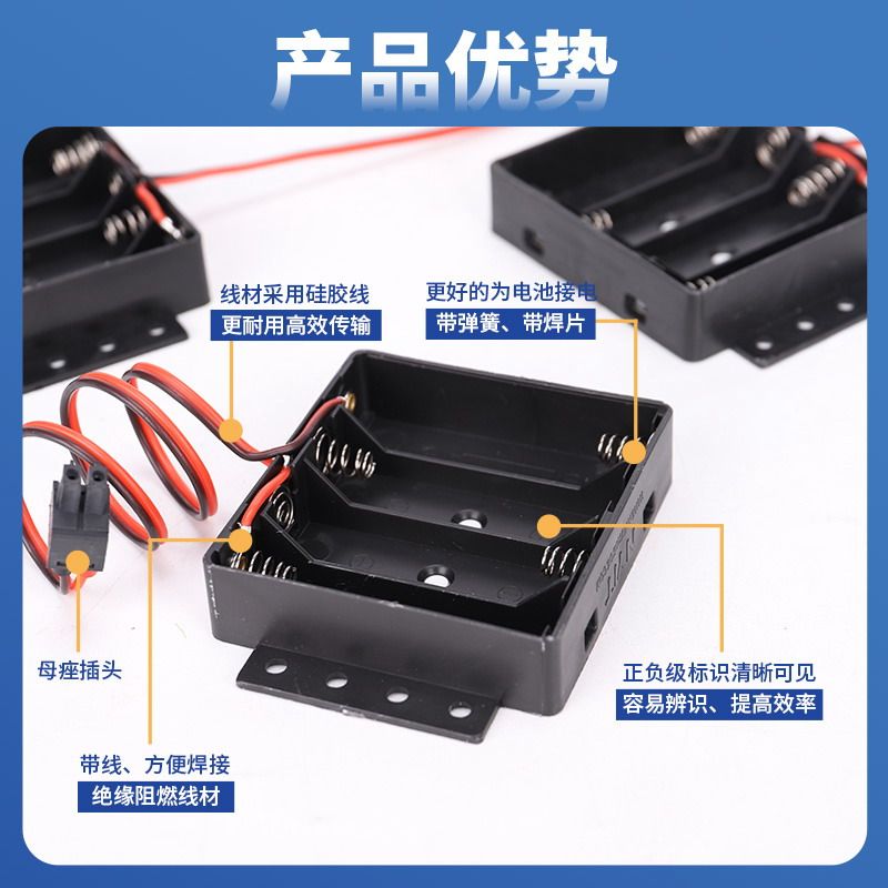 Battery box No. 5 18650 battery holder with silicone wire and terminal 4 sections 6V