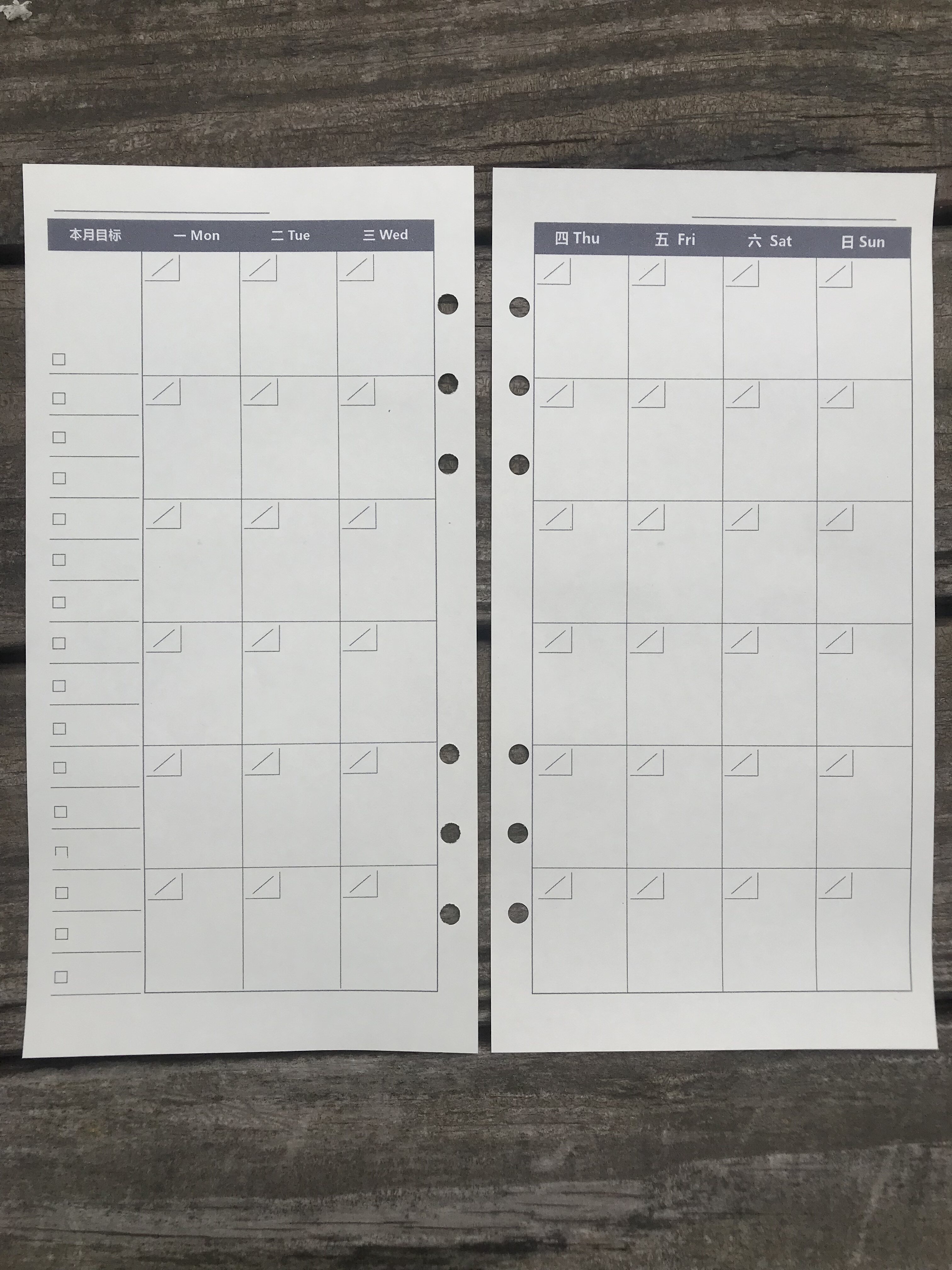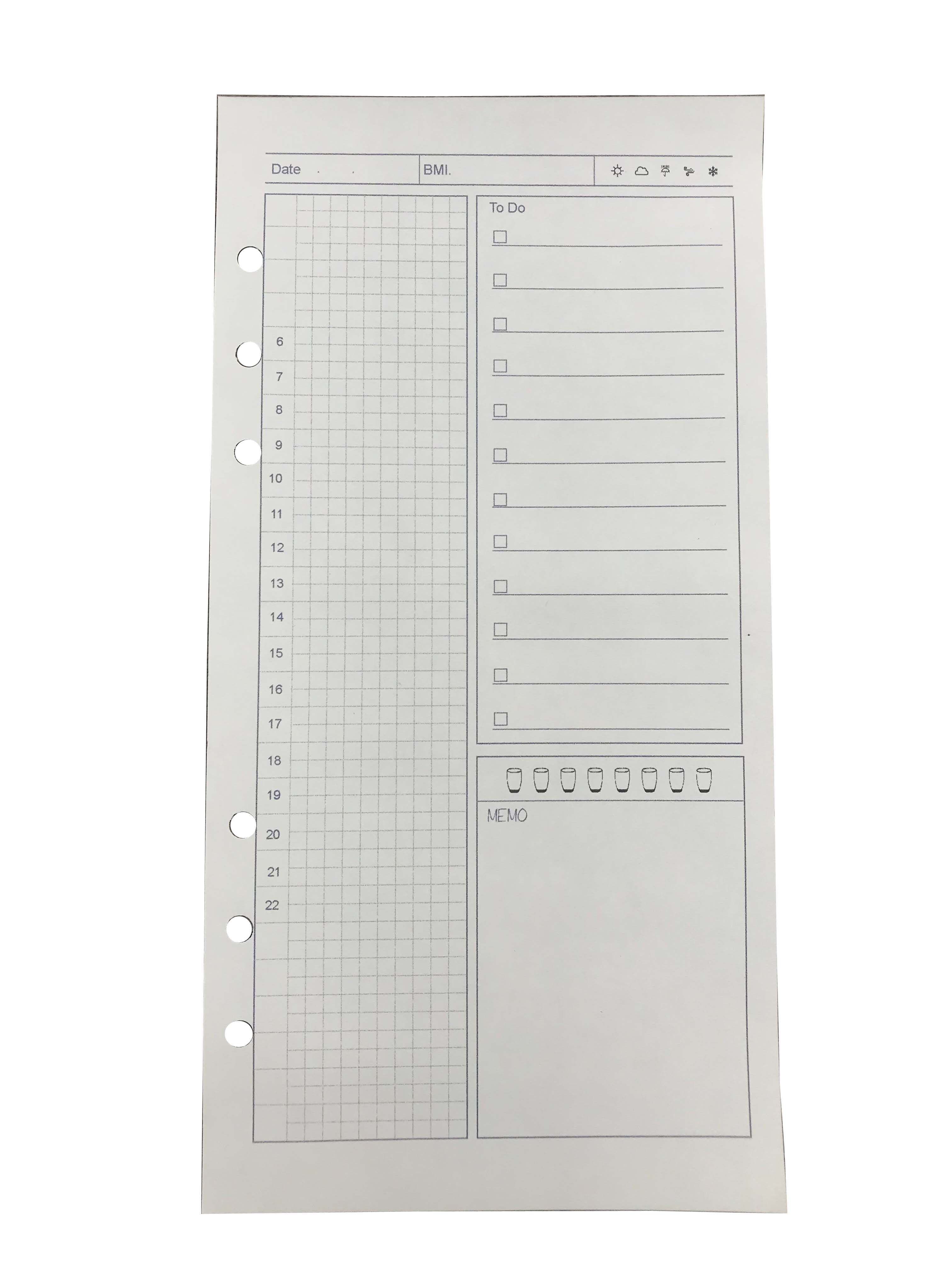 Handbook lease paper a5slim inner page Monthly plan week planned blank horizontal mesh 100 sheets