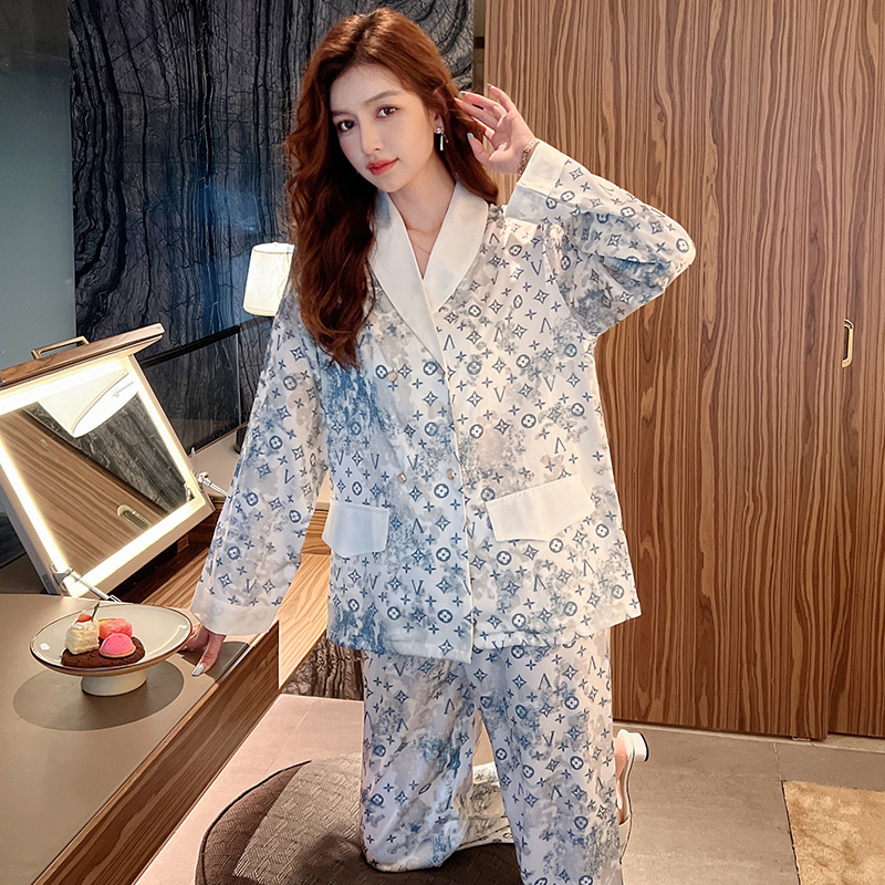Spring and Autumn Pajamas New Letter Long sleeve trousers two pieces of snow and ice silk comfortable luxury outfit to wear home suit
