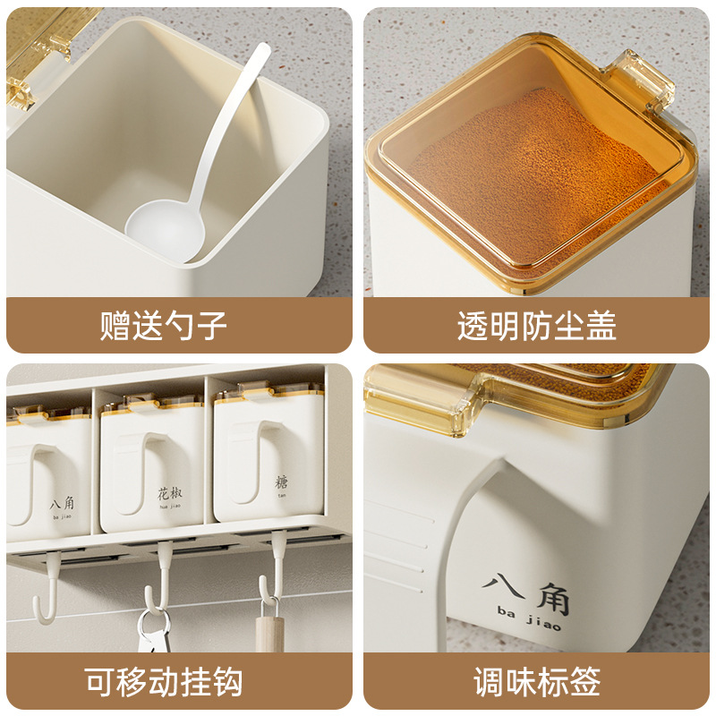 Seasoning box wall-mounted home kitchen multi-grid seasoning salt and monosodium glutamate bottle storage box wall storage shelf