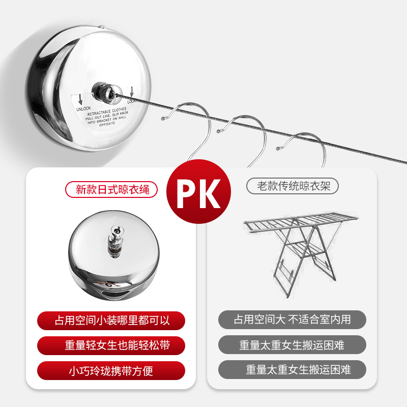 Balcony Invisible Telescopic Clothesline Rope Free to shrink cool clothes Rope Steel Wire Sunning Rope Indoor clotheshorse Clotheson-Taobao