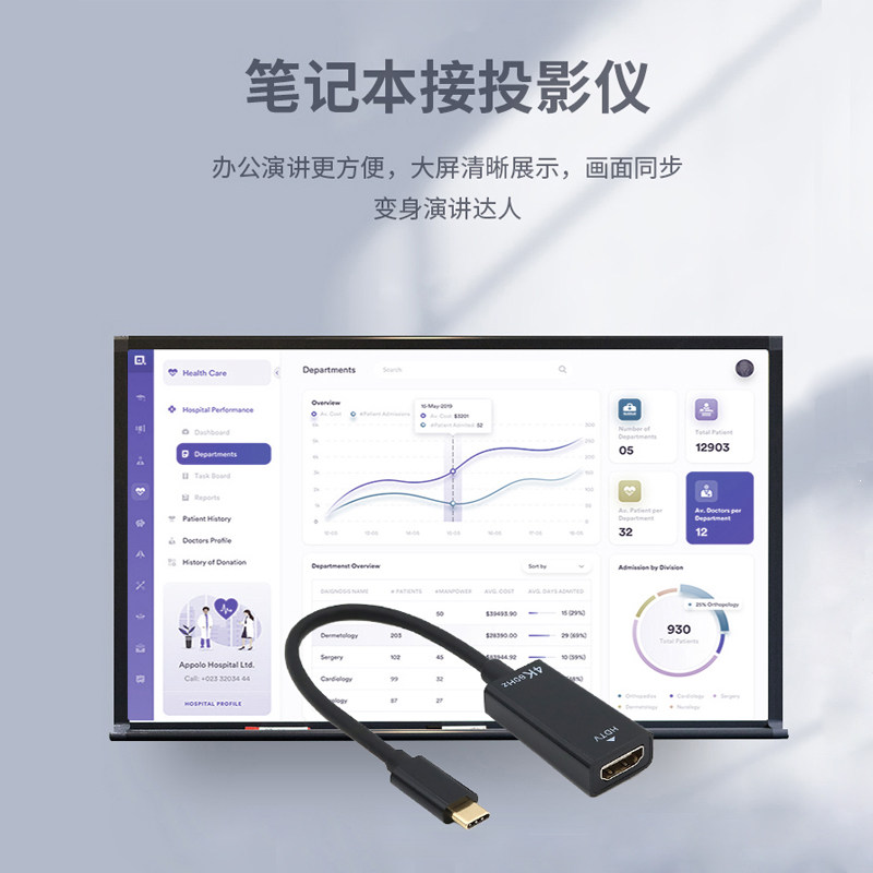 Notebook Type-C turn to HDMI switching line 4K@60HZ version suitable for Apple Macbook pro Air Huawei Dell Lenovo Computer to pick up high-definition projector