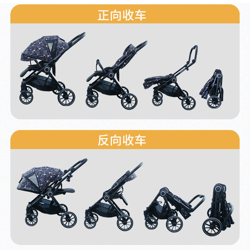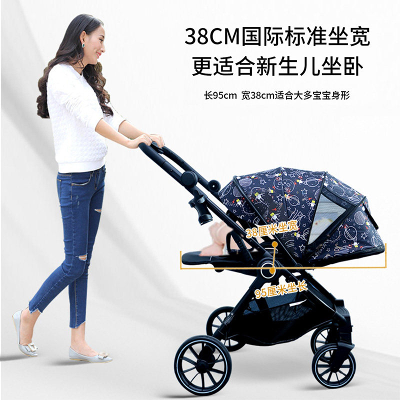 The 4-in-1 stroller can sit and lie high landscape stroller shock absorbing folding two-way baby stroller fully canopyed