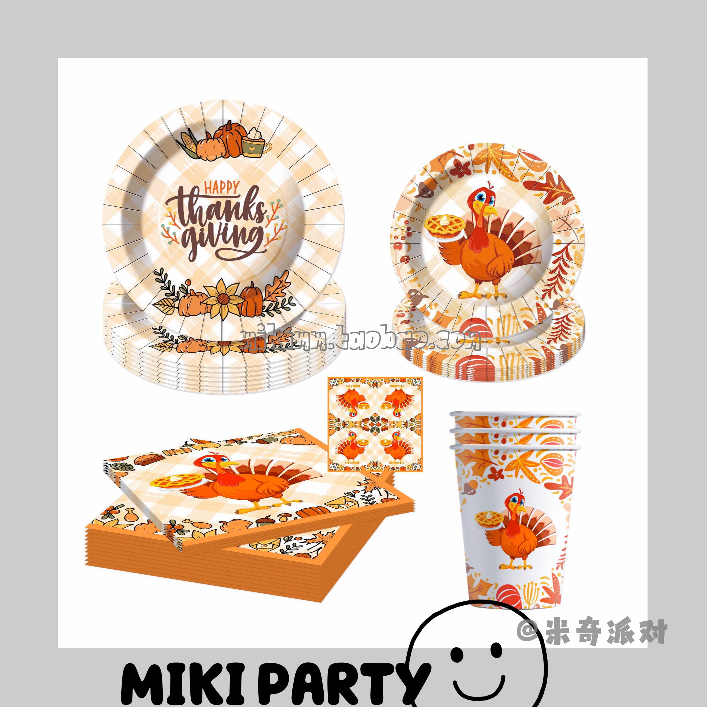 New Turkey Day Thanksgiving Themed Party Decoration Cutlery Set Pull Flag Banner Paper Plate Tissue Cupcakes