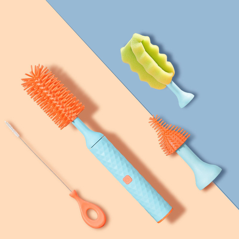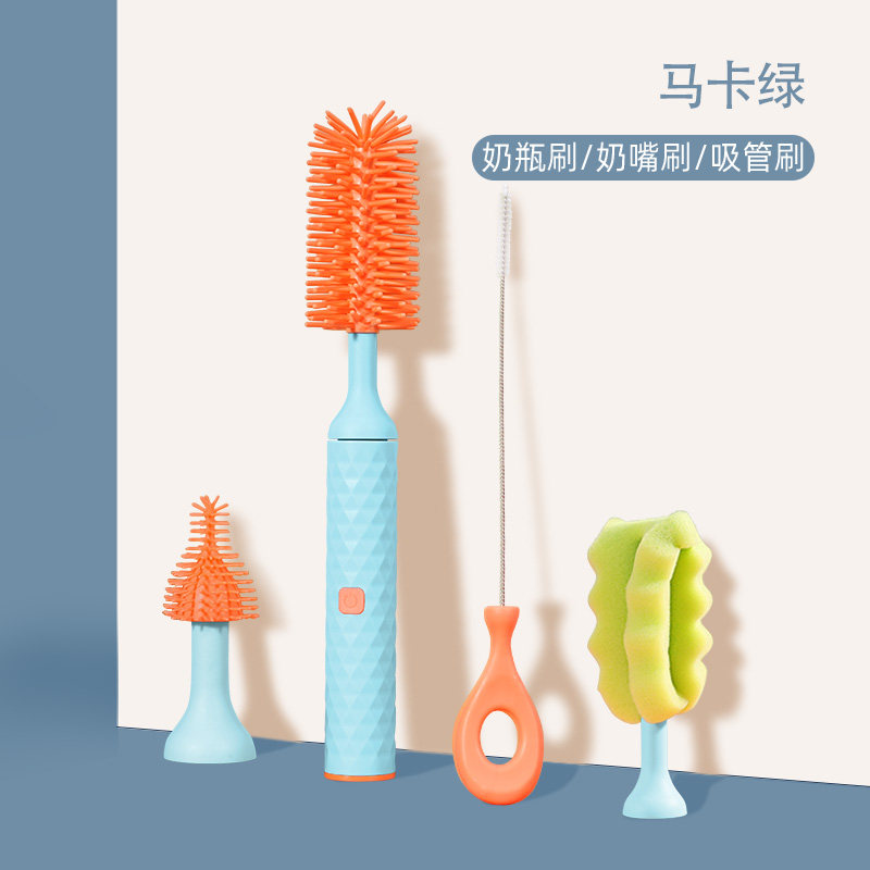 Busybear Electric Wash Bottle Brush Set Baby Special Silicone Long Handle Pattern Cleaning Brush