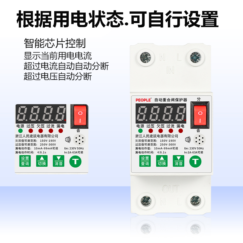 Leakage protector switch automatic reclosing adjustable current voltage home 1A-63A with lightning protection 220V limited flow-Taobao