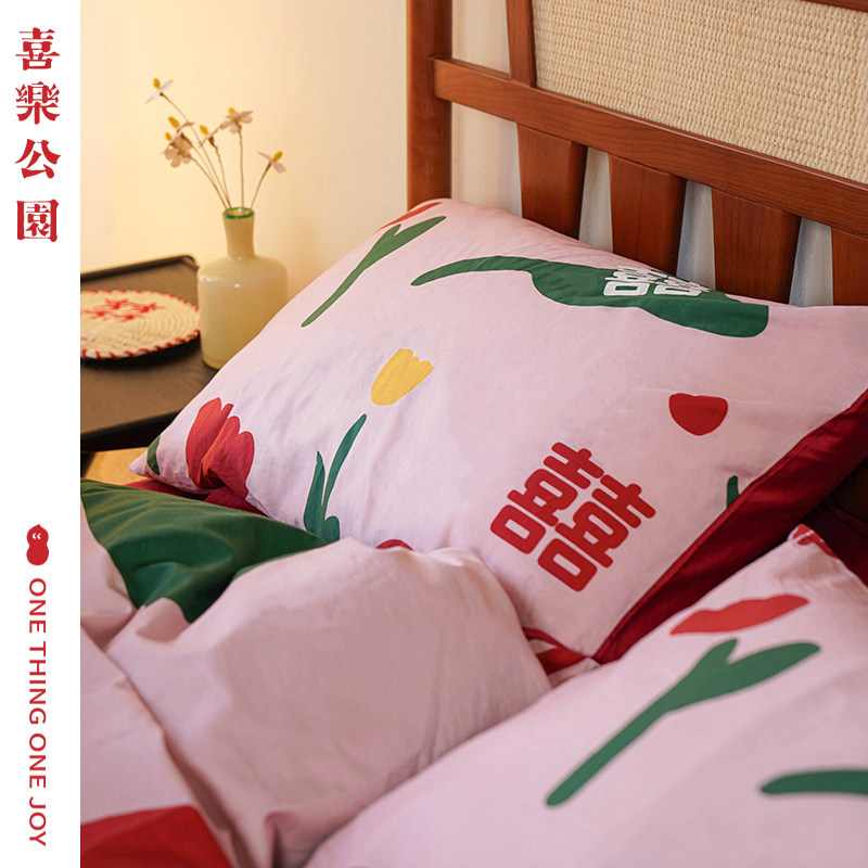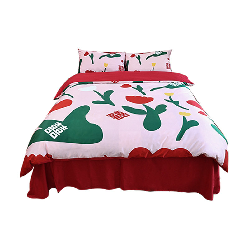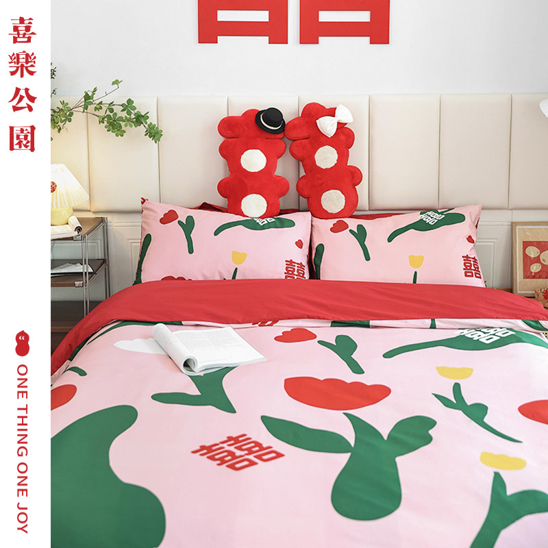Xile Park four-piece simple wedding bedding bedding pure cotton wedding red bed sheet quilt cover