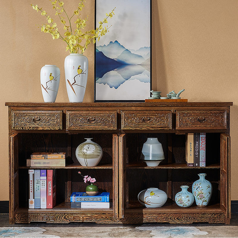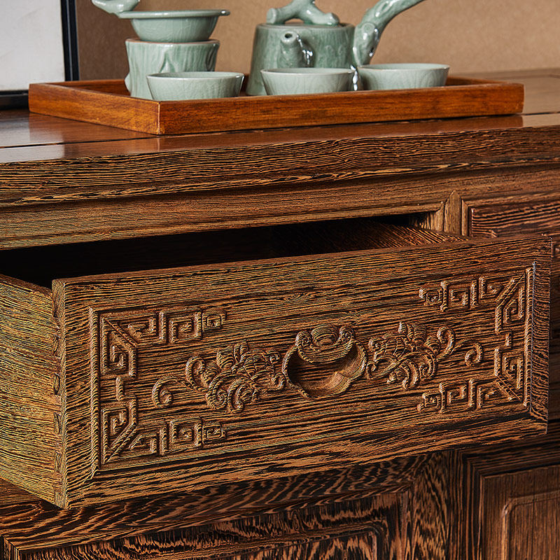 Mahogany sideboard chicken wing wood new Chinese style carved all solid wood classical locker restaurant household furniture