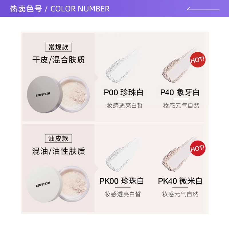 P40 ivory white (suitable for dry skin mixed skin quality) P00 pearl white (suitable for dry skin mixed skin quality)